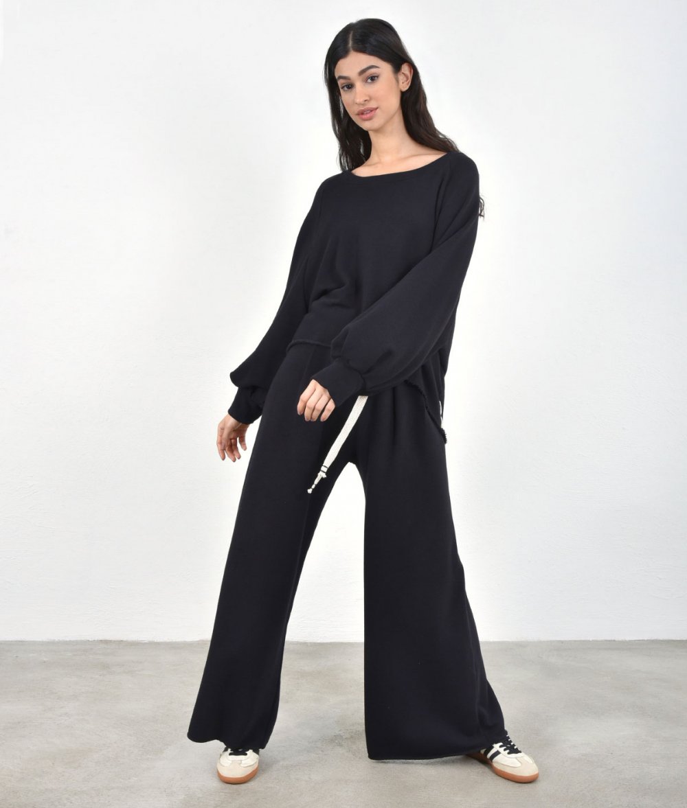 Γυναικείο παντελόνι wide leg με λάστιχο στη μέση από 50% βαμβάκι και 50% μπαμπού.