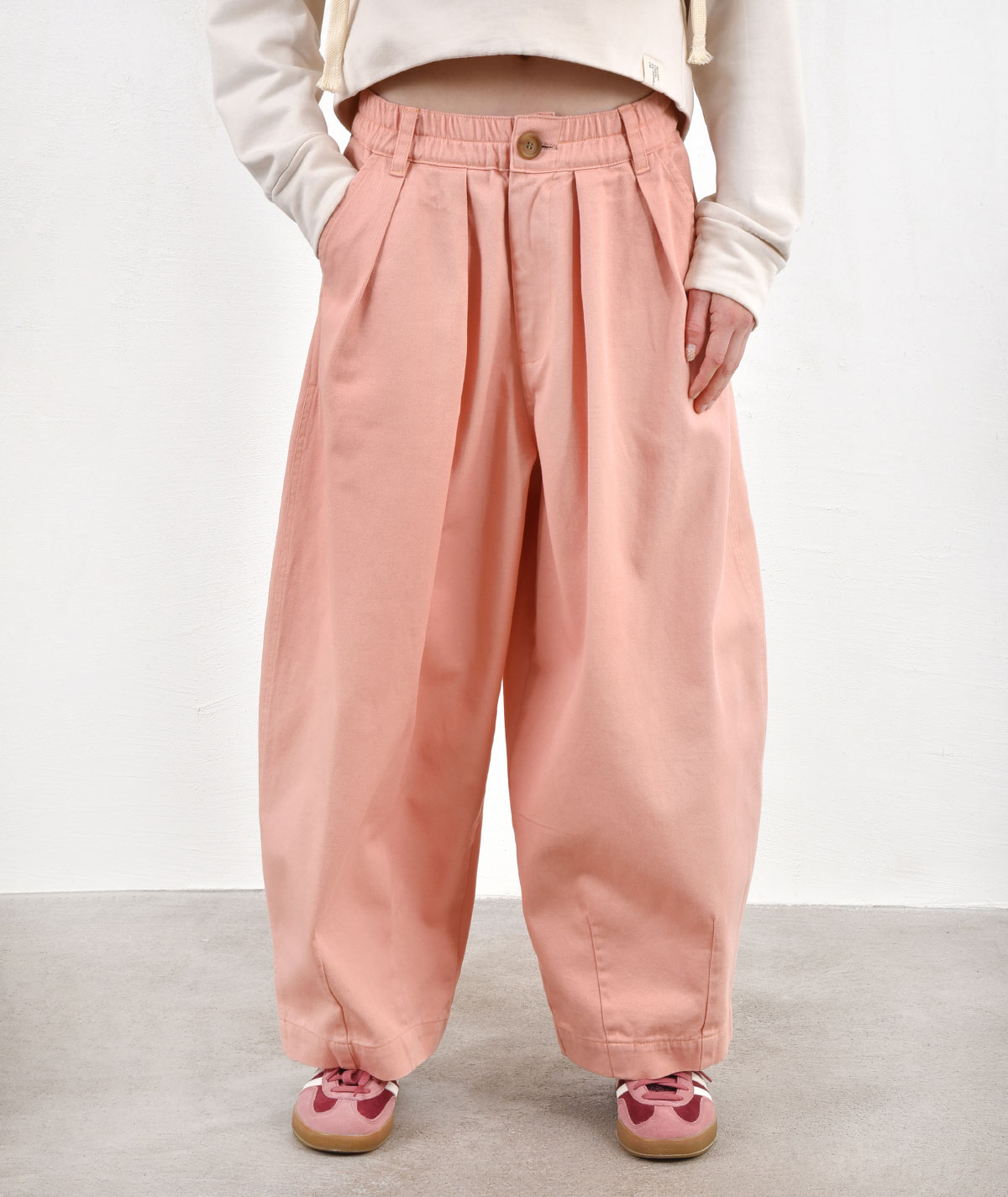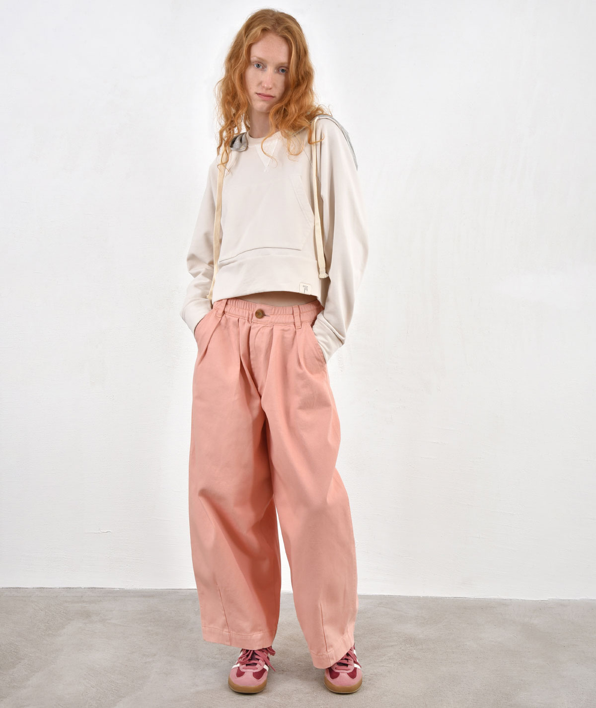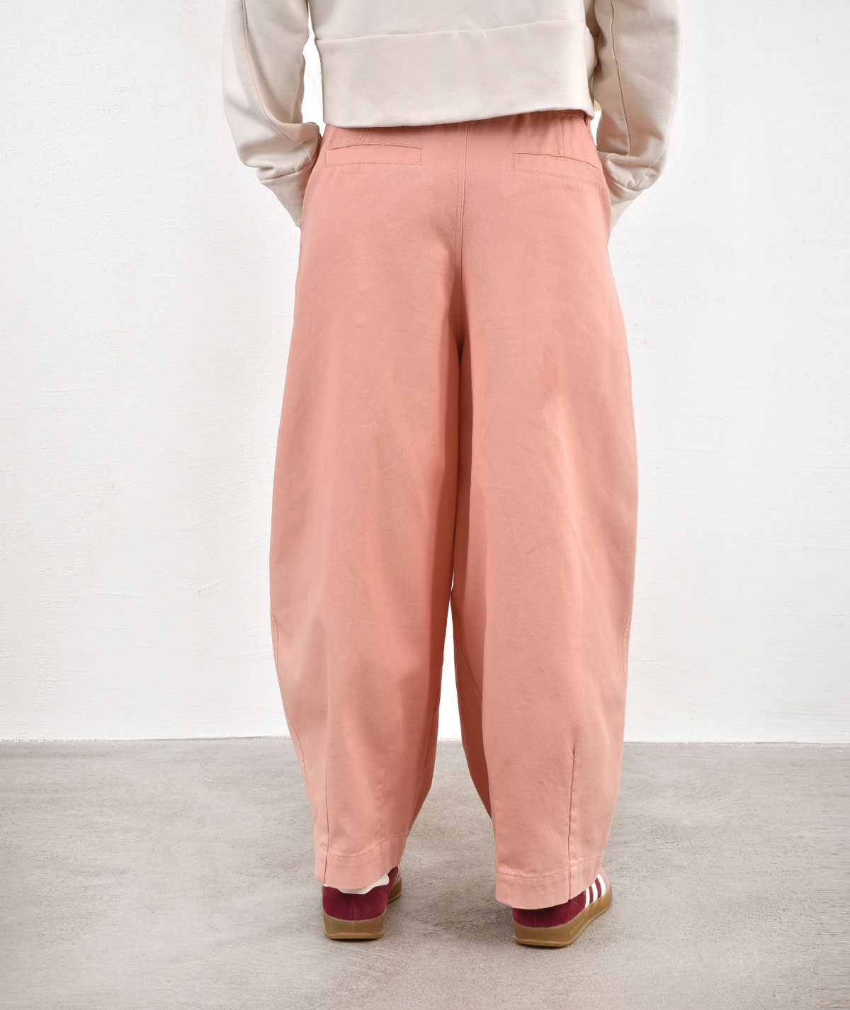 Γυναικείο baggy παντελόνι με πιέτες μπροστά και λάστιχο στη μέση από 100% βαμβάκι.