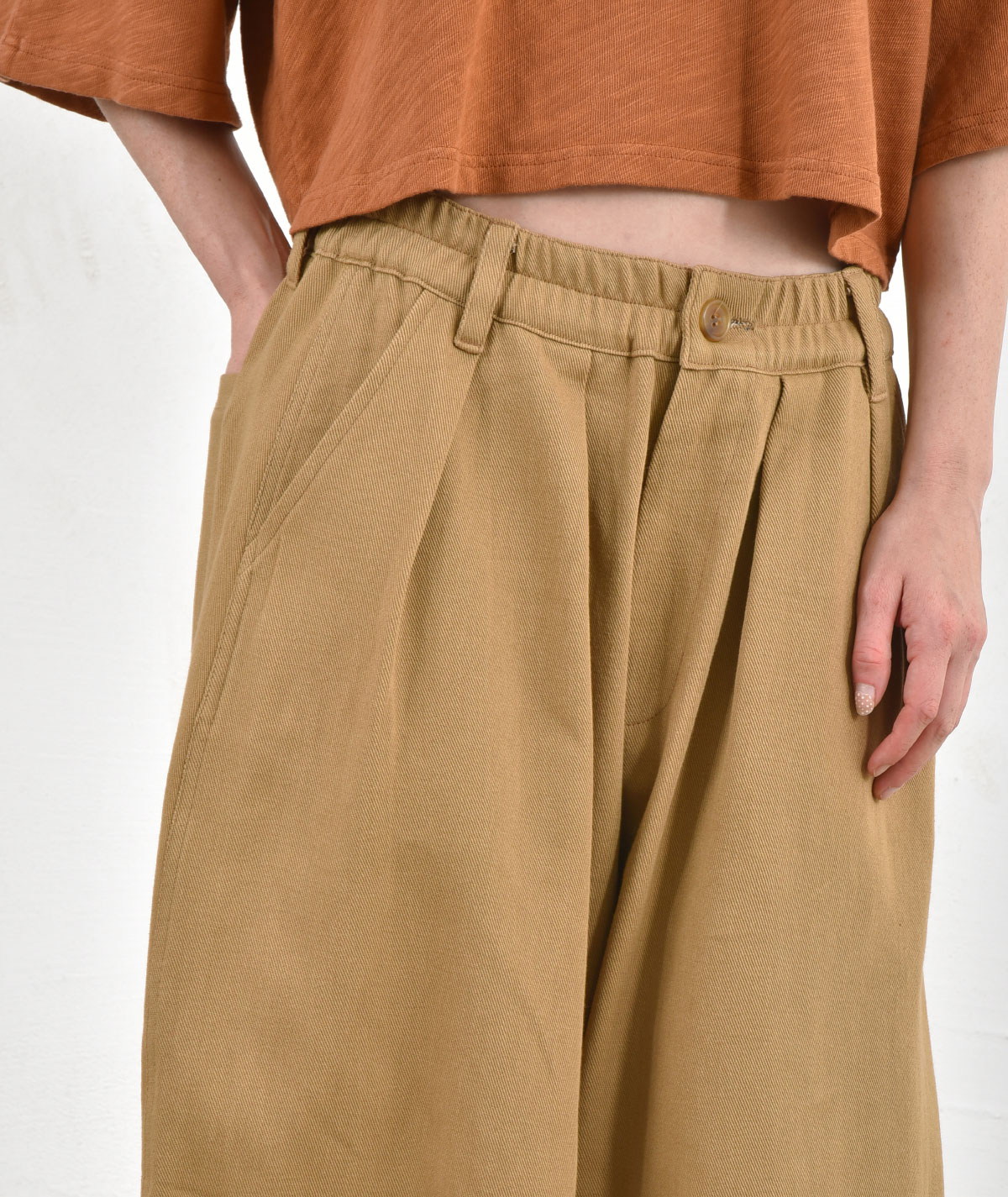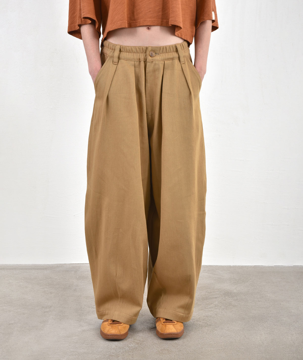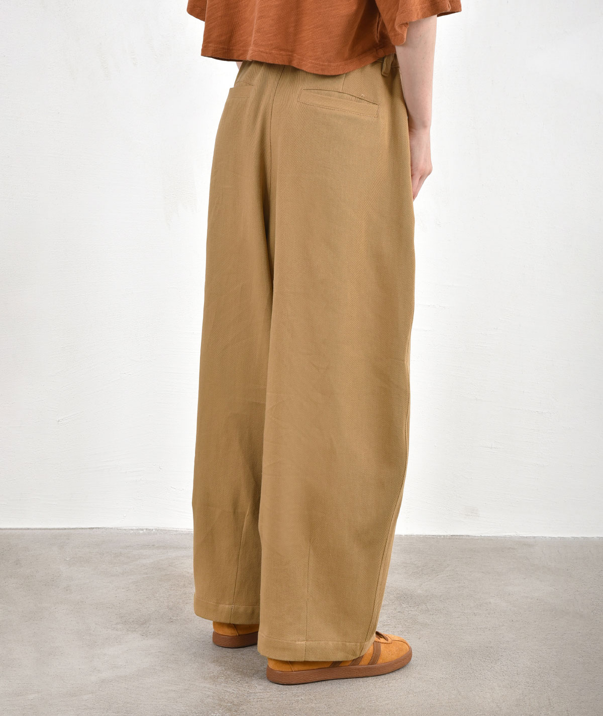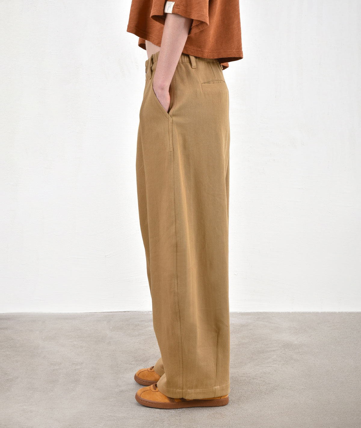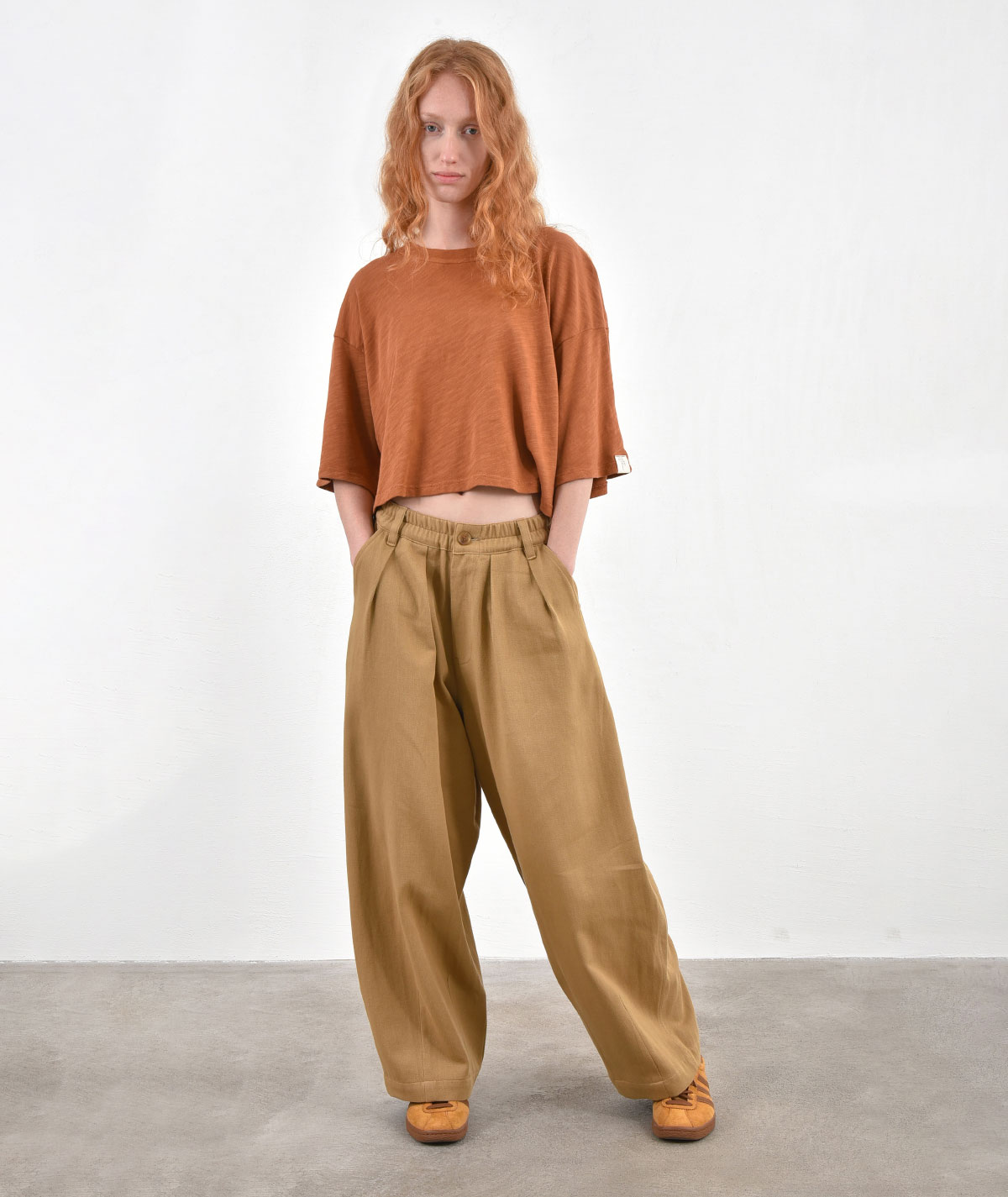 Γυναικείο baggy παντελόνι με πιέτες μπροστά και λάστιχο στη μέση από 100% βαμβάκι.