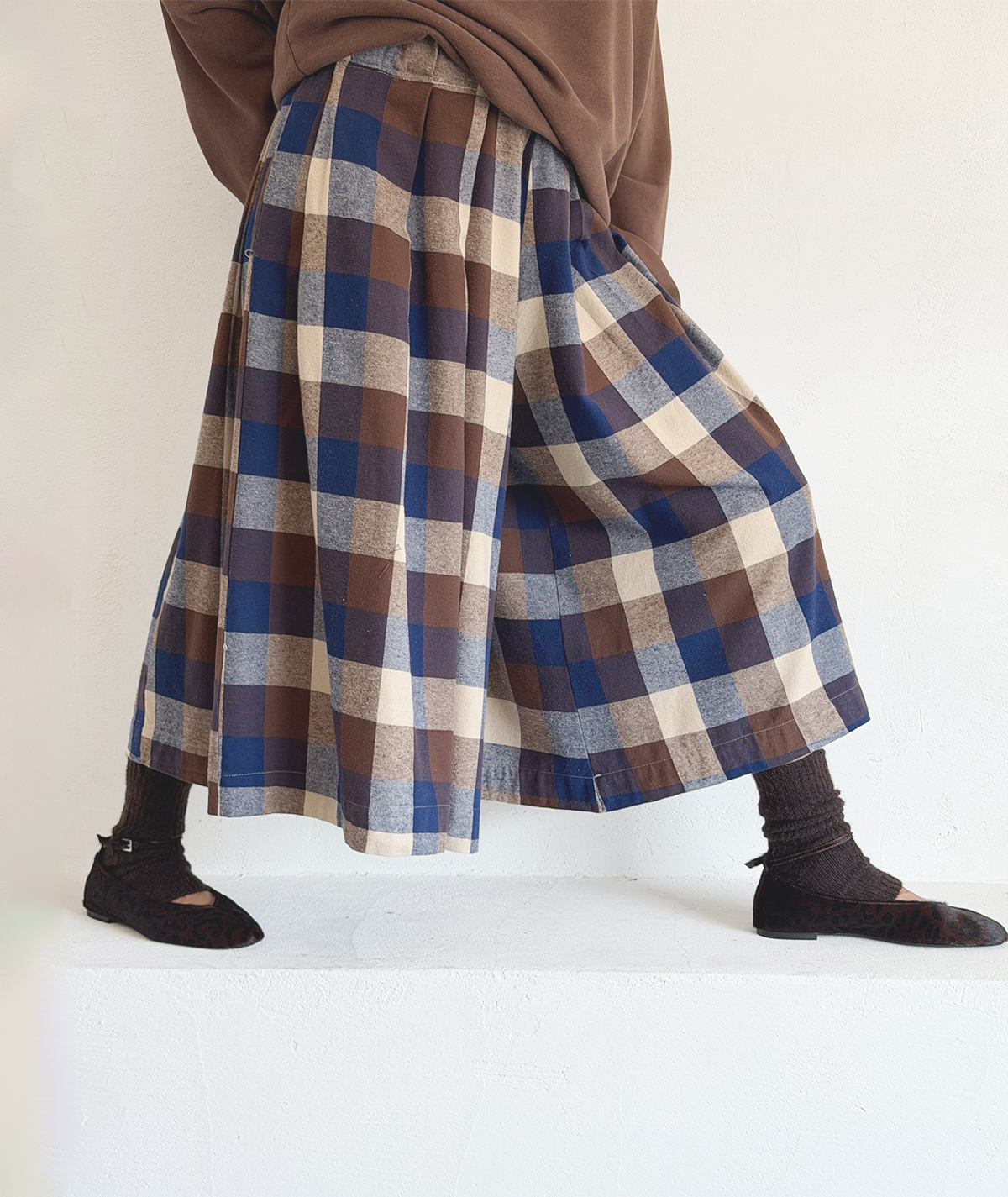 Καρό zip κυλότ φούστα-παντελόνι, με άνετη γραμμή και σταθερή εφαρμογή. Σχεδιασμένη για καθημερινή χρήση, συνδυάζει την ελευθερία της φούστας με την πρακτικότητα του παντελονιού. Διατίθεται σε περιορισμένη ποσότητα.