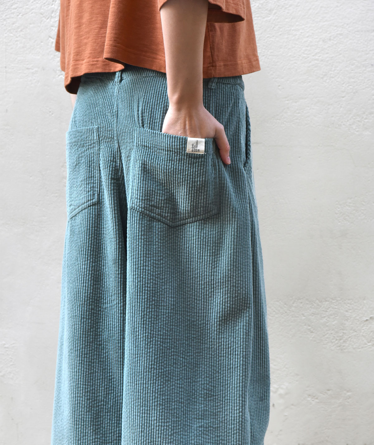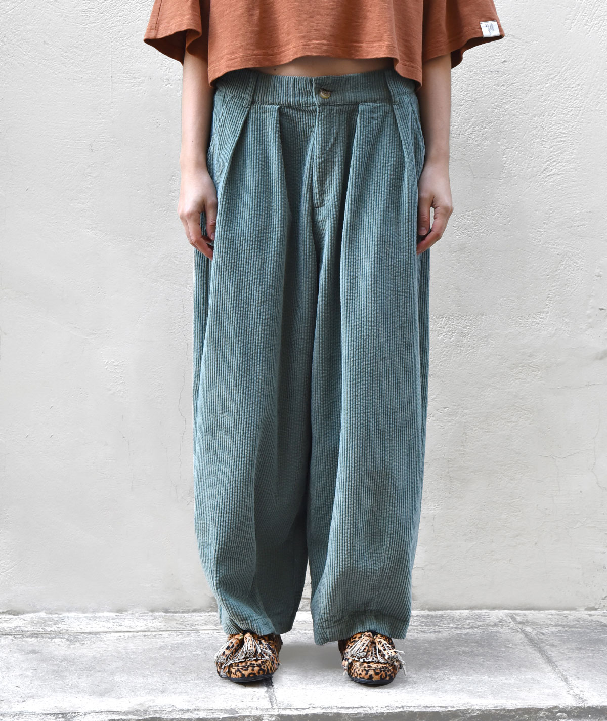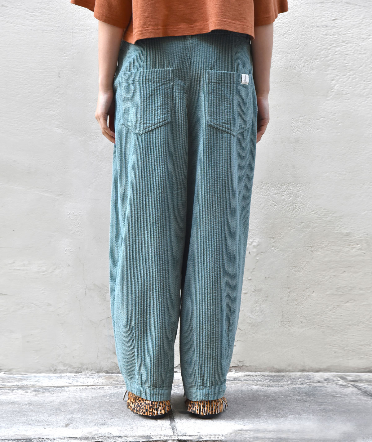 Γυναικείο κοτλέ baggy παντελόνι με πιέτες μπροστά και λάστιχο στη μέση από 100% βαμβάκι.