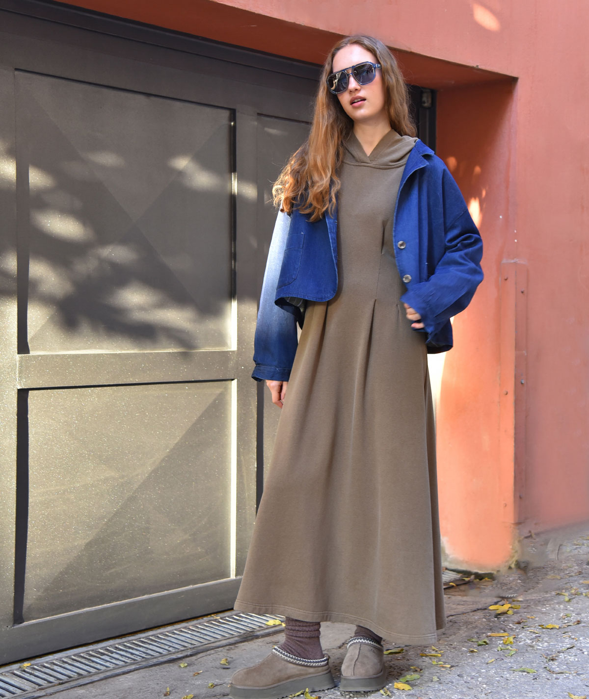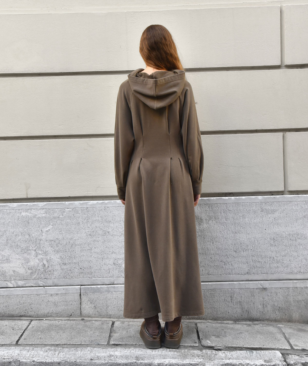 Μακρύ φόρεμα με κουκούλα και σύγχρονο χαρακτήρα, που τονίζει τη μέση με διακριτικές πιέτες. Κατασκευασμένο από ύφασμα 50% bamboo και 50% βαμβάκι, προσφέρει φυσική απαλότητα, δροσερή αίσθηση και άνεση όλη μέρα. Ένα εύκολο, statement κομμάτι που συνδυάζει casual αισθητική με θηλυκή γραμμή.