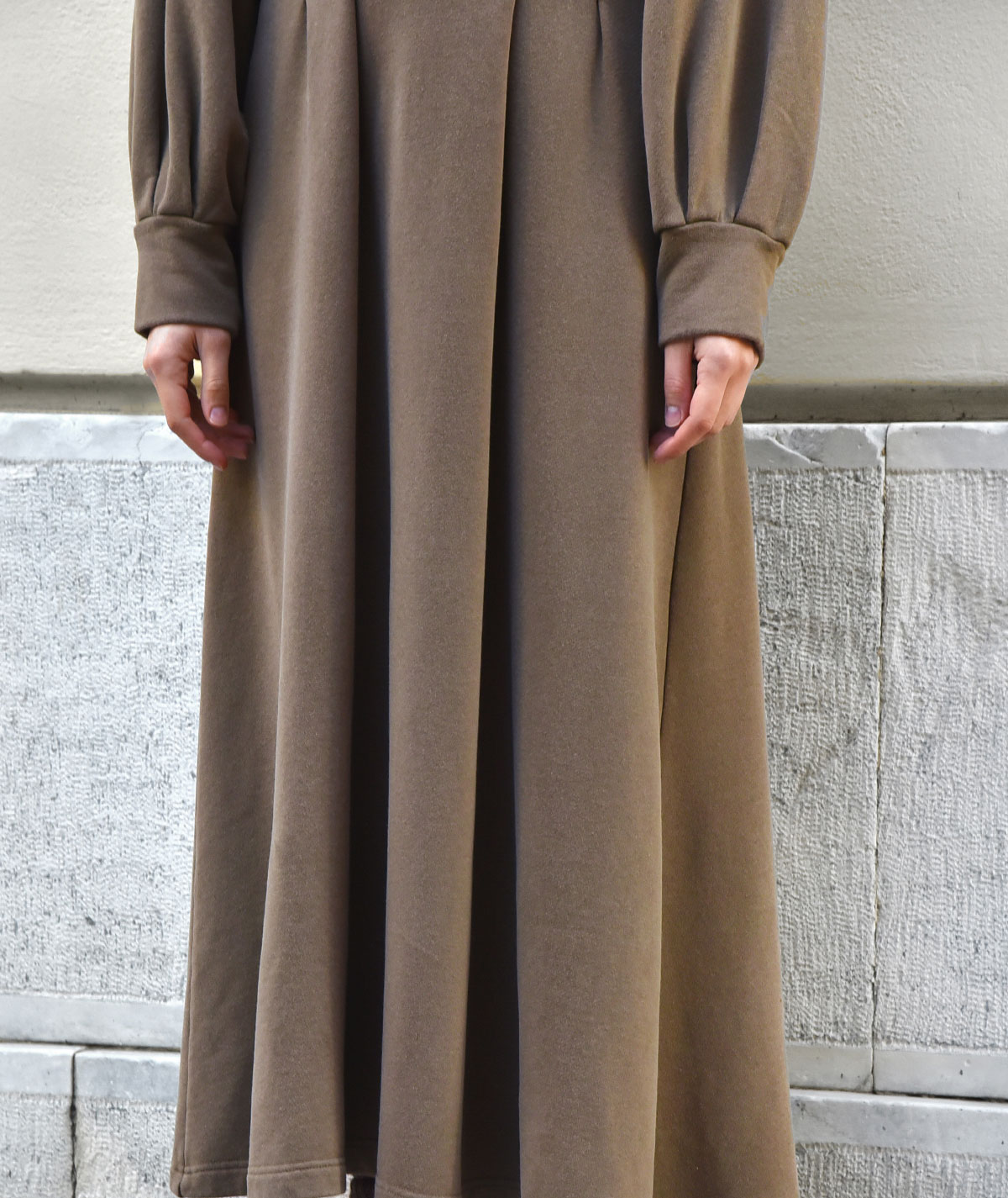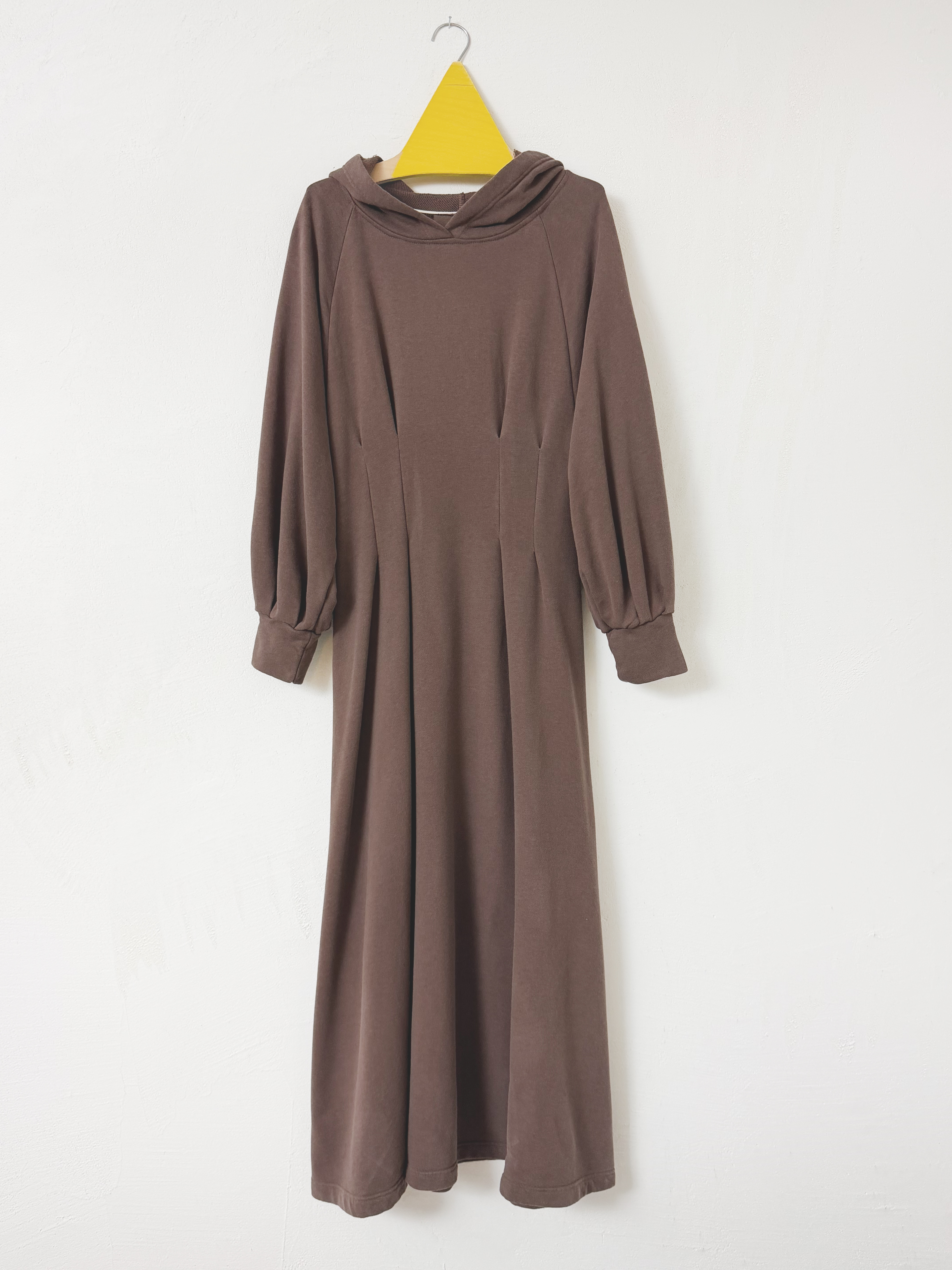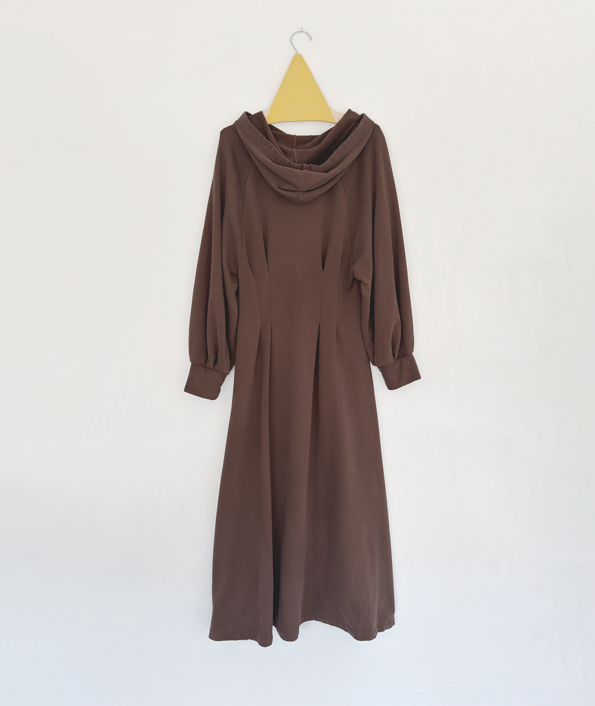 Μακρύ φόρεμα με κουκούλα και πιέτες 50% bamboo και 50% βαμβάκι.