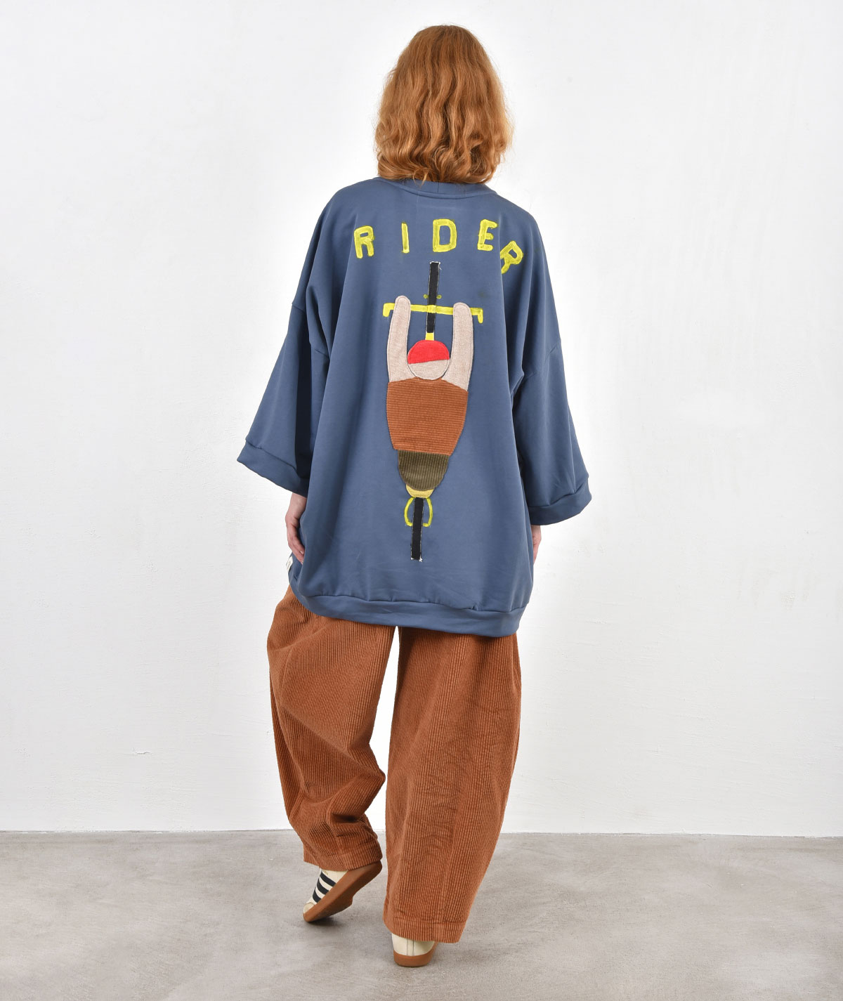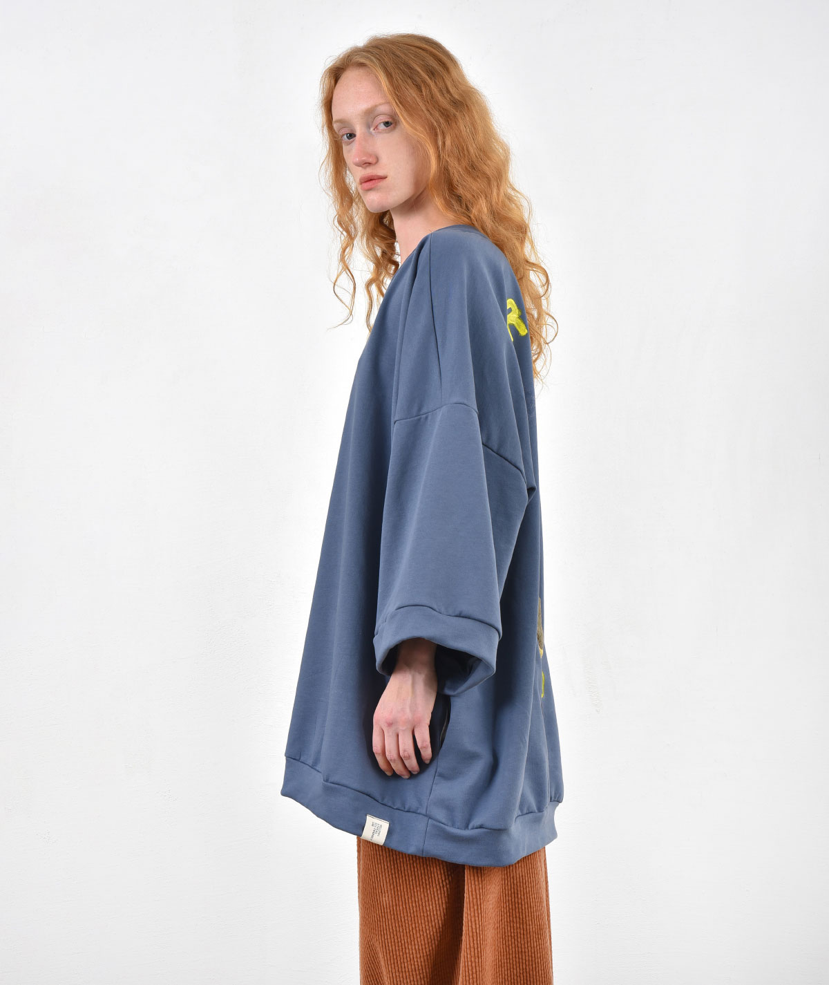 Oversized μπλούζα φούτερ από 100% βαμβάκι, με απλικέ χειροποίητο σχέδιο ενός ποδηλάτη, δημιουργημένο από ανακυκλωμένα υφάσματα που δεν θέλαμε απλώς να πετάξουμε. Ένα ιδιαίτερο κομμάτι που εκφράζει μια πιο υπεύθυνη και δημιουργική προσέγγιση στη μόδα. Μια eco-friendly επιλογή που συνδυάζει άνεση, στυλ και σεβασμό προς το περιβάλλον. Ιδανική για καθημερινές εμφανίσεις με χαρακτήρα και συνείδηση.
