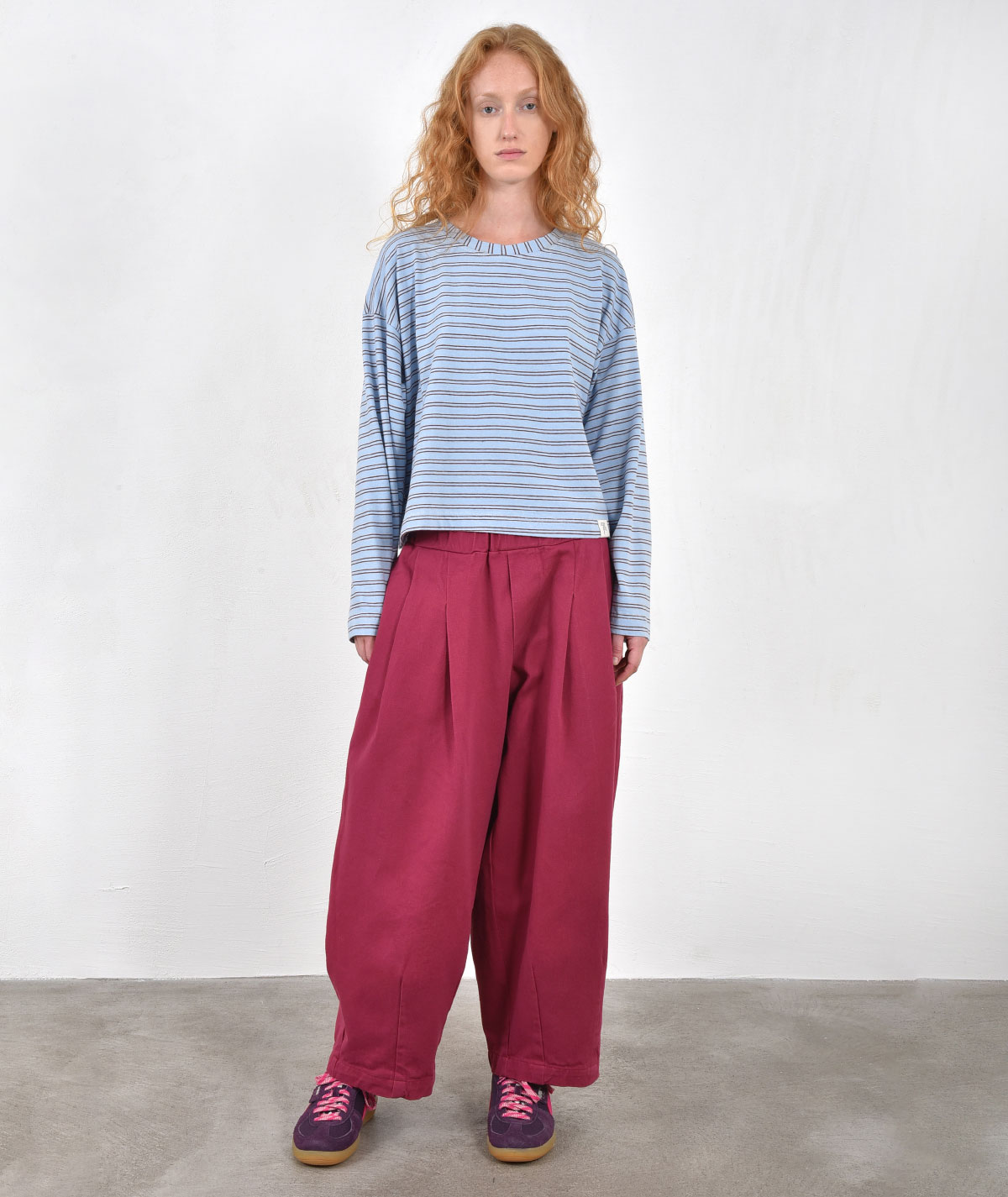 Casual oversized παντελόνι σε άνετη γραμμή με πιέτες μπροστά για στυλ που δείχνει αβίαστα προσεγμένο. Κατασκευασμένο από 100% βαμβάκι για φυσική αίσθηση και καθημερινή άνεση. Ιδανική επιλογή για looks που συνδυάζουν άνεση και σύγχρονη αισθητική, ταιριάζει εύκολα με όλες τις μπλούζες τις συλλογής.