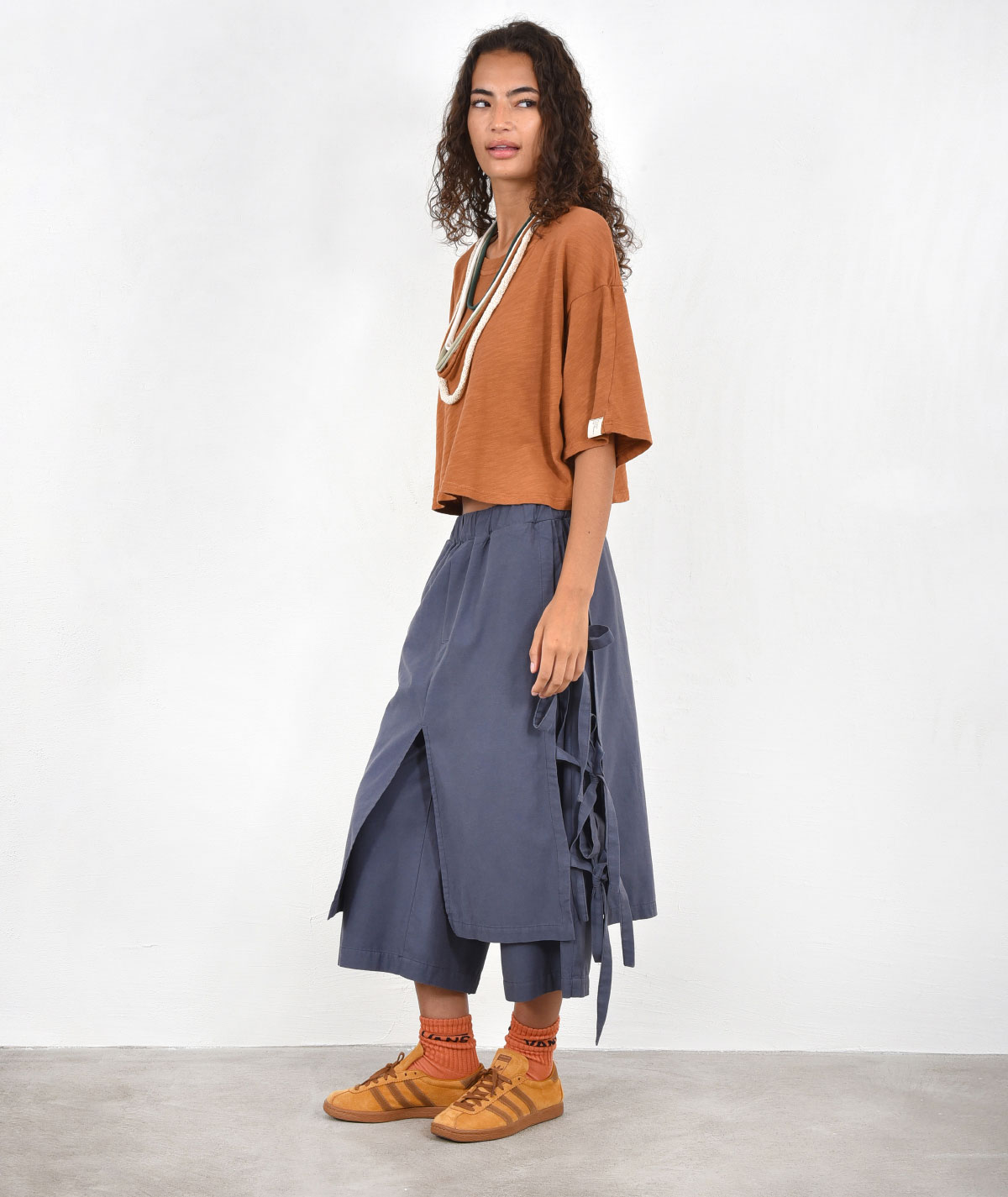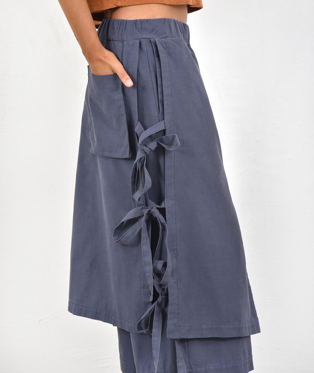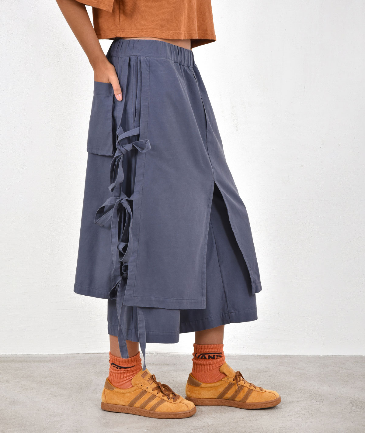 Φούστα-παντελόνι με πλαϊνά δεσίματα και τσέπη 54% Lyocell και 46% βαμβάκι.