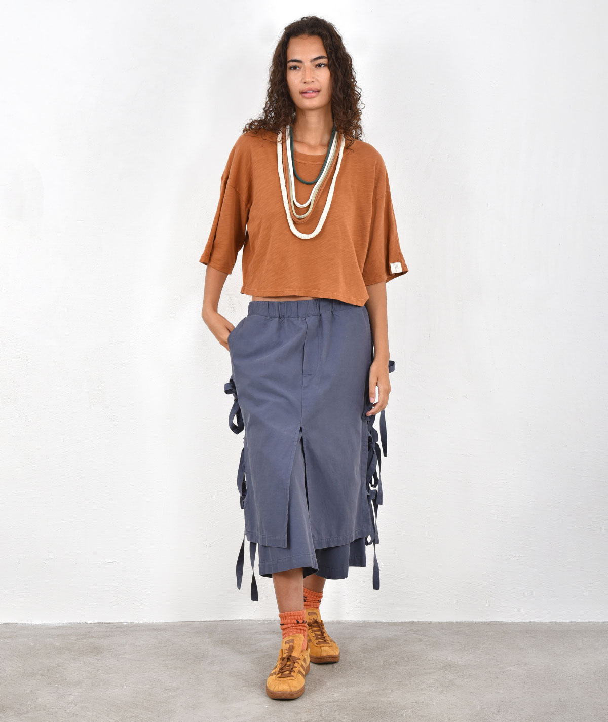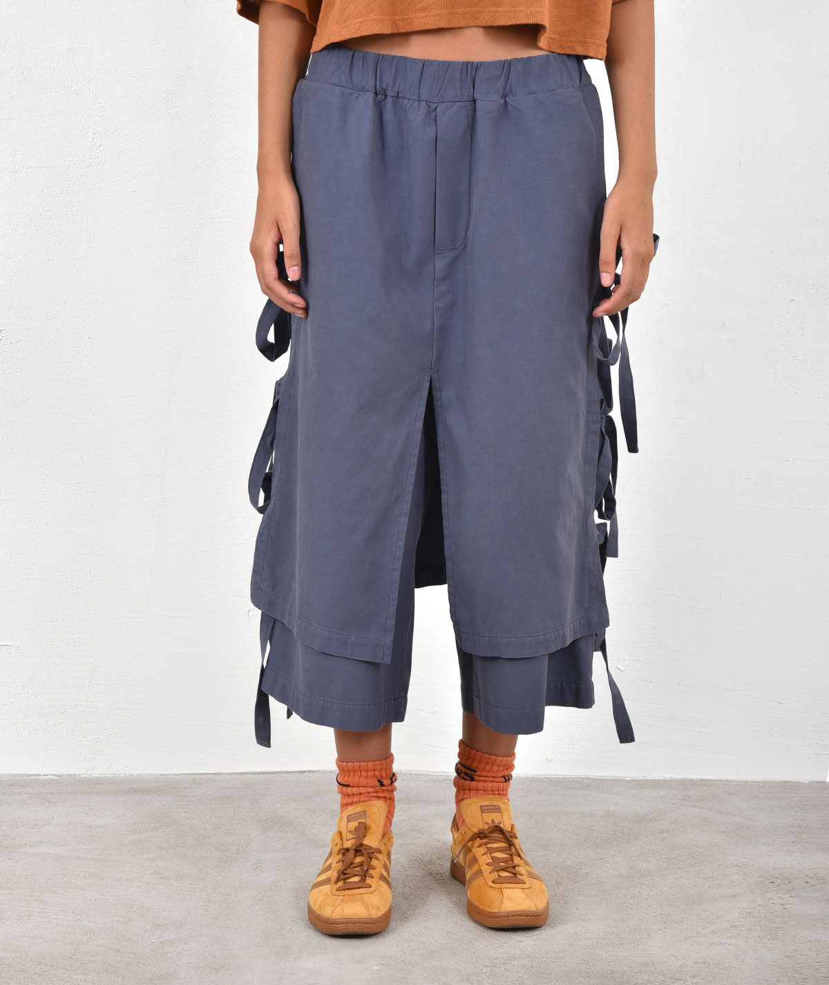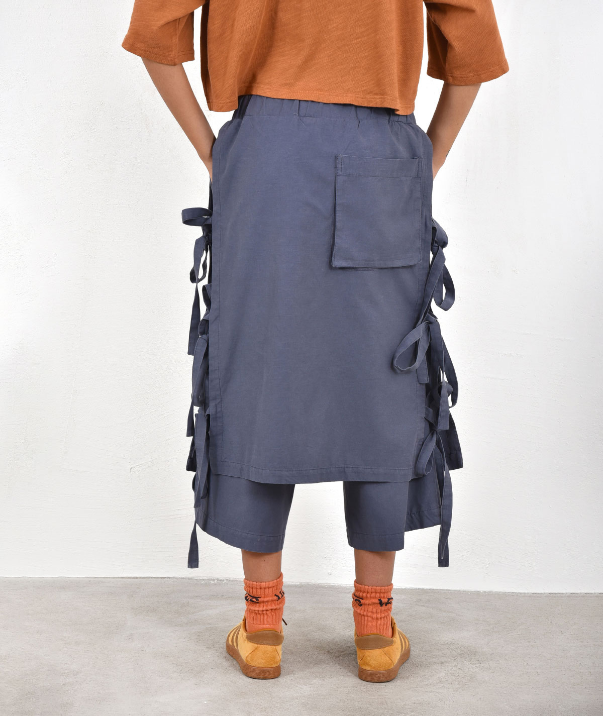 Φούστα-παντελόνι με πλαϊνά δεσίματα και τσέπη 54% Lyocell και 46% βαμβάκι.