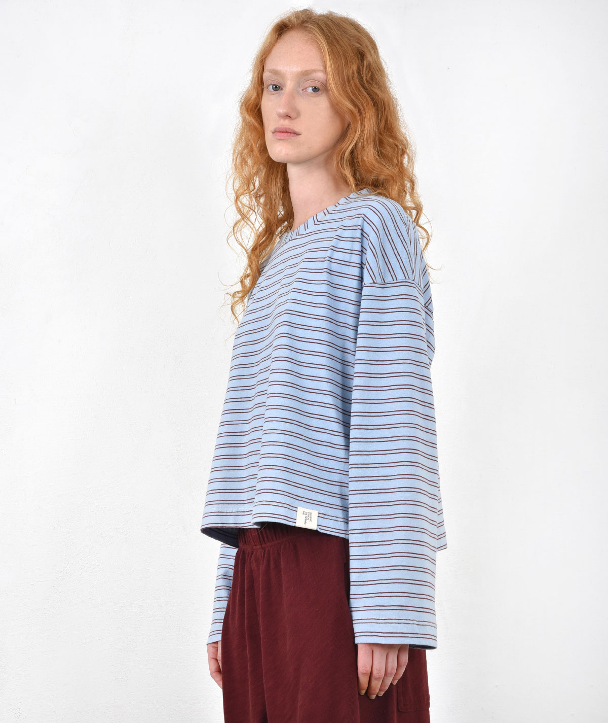 Ριγε μπλουζα φαρδια με λαιμοκοψη