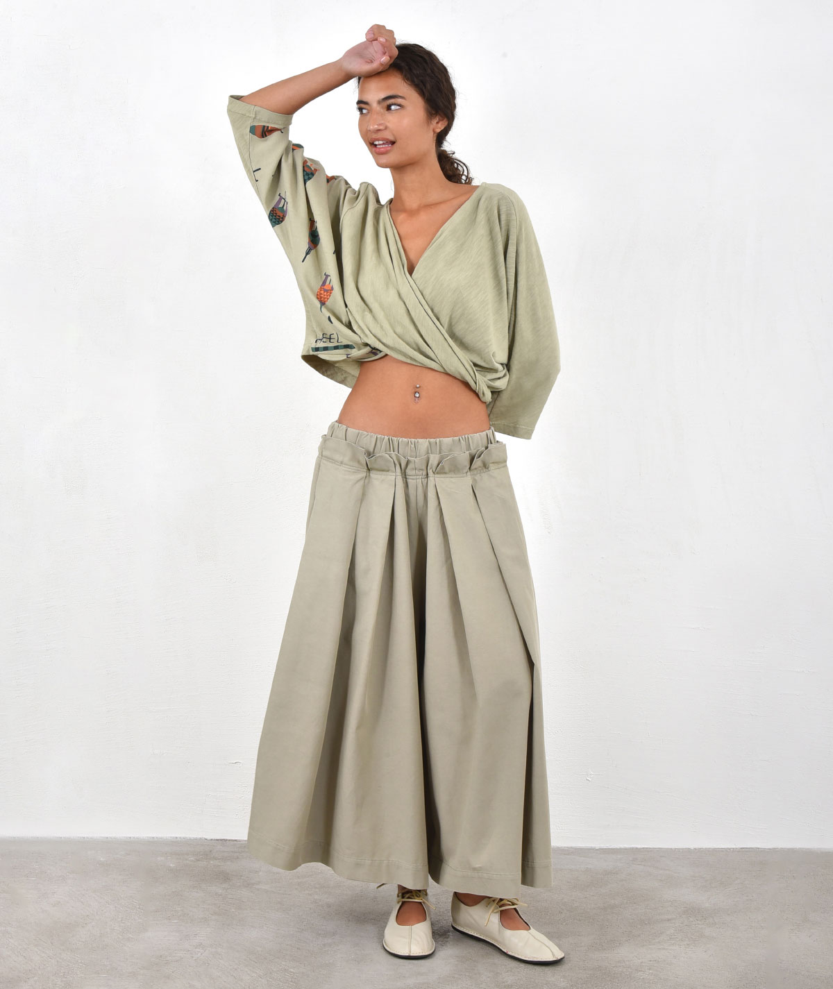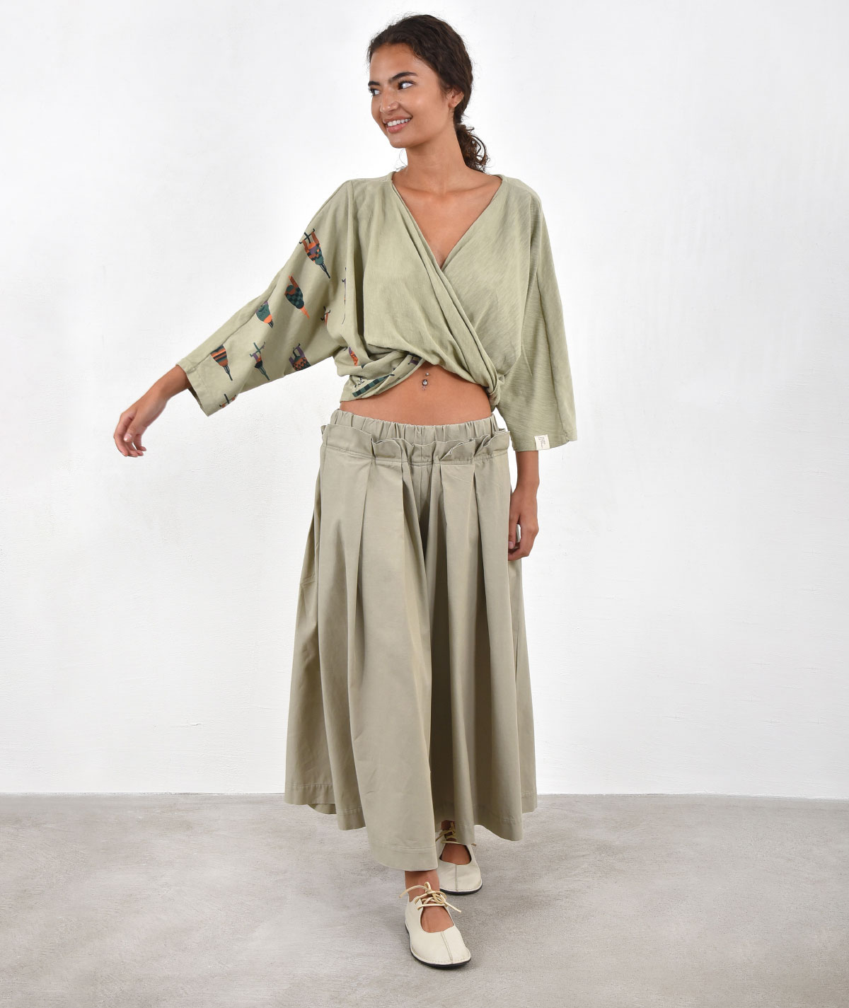 Ζιπ Κιλότ με πιέτες από 54% Lyocell και 46% βαμβάκι.