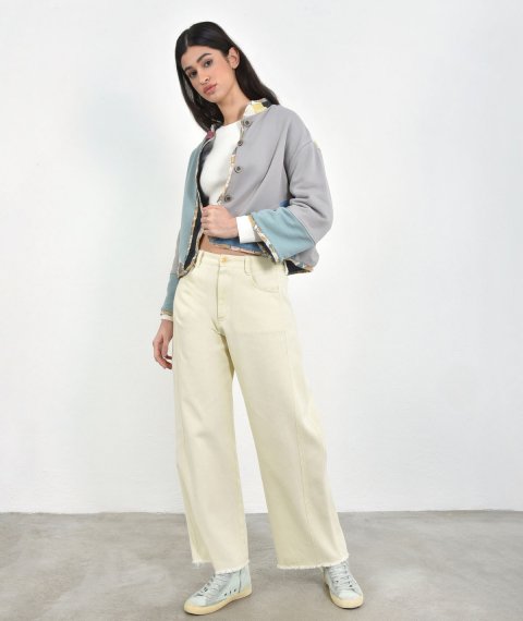 Unisex denim with external pockets made of 100% cotton.