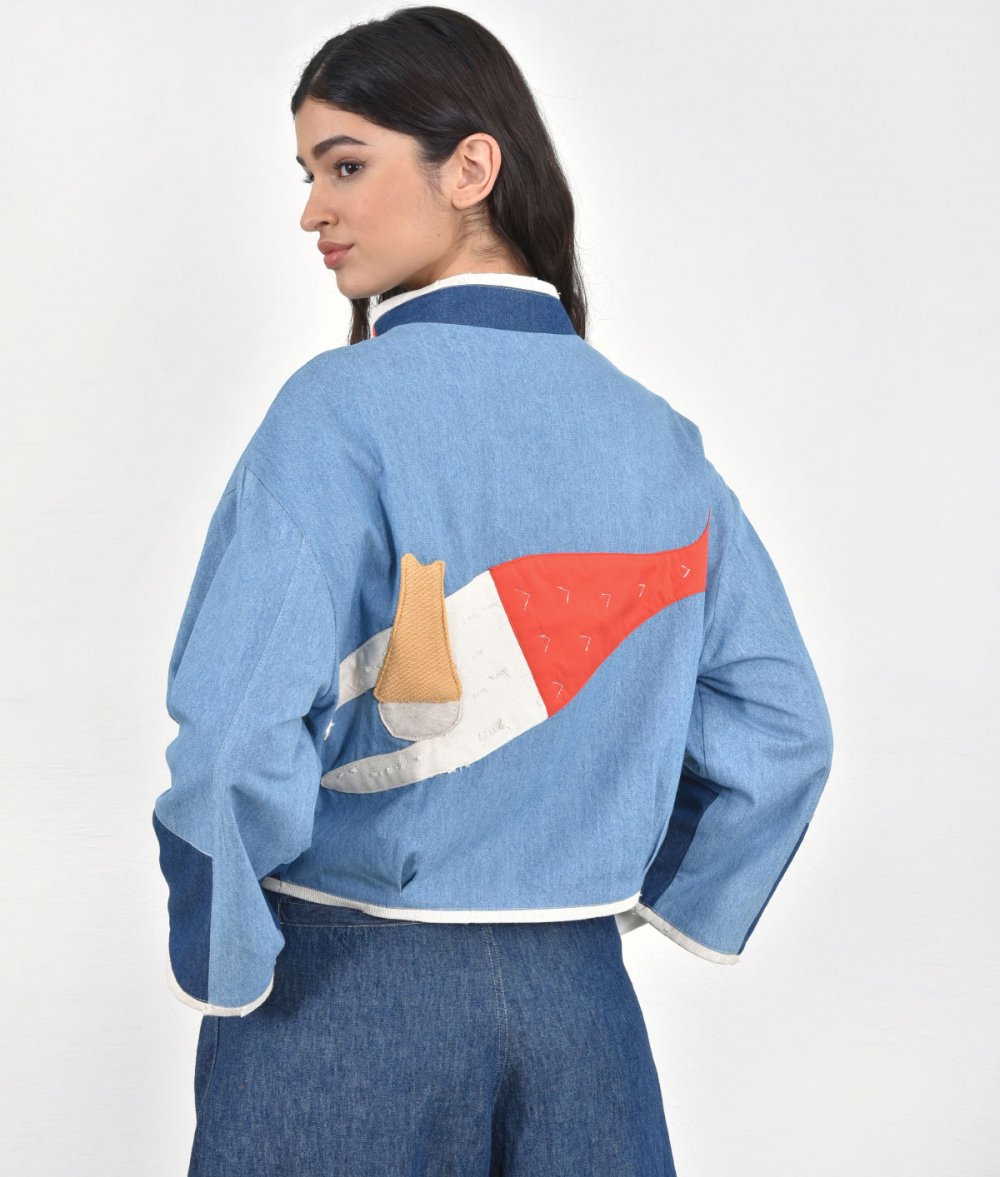 Women's denim patchwork jacket “mermaid” made of 100% cotton.