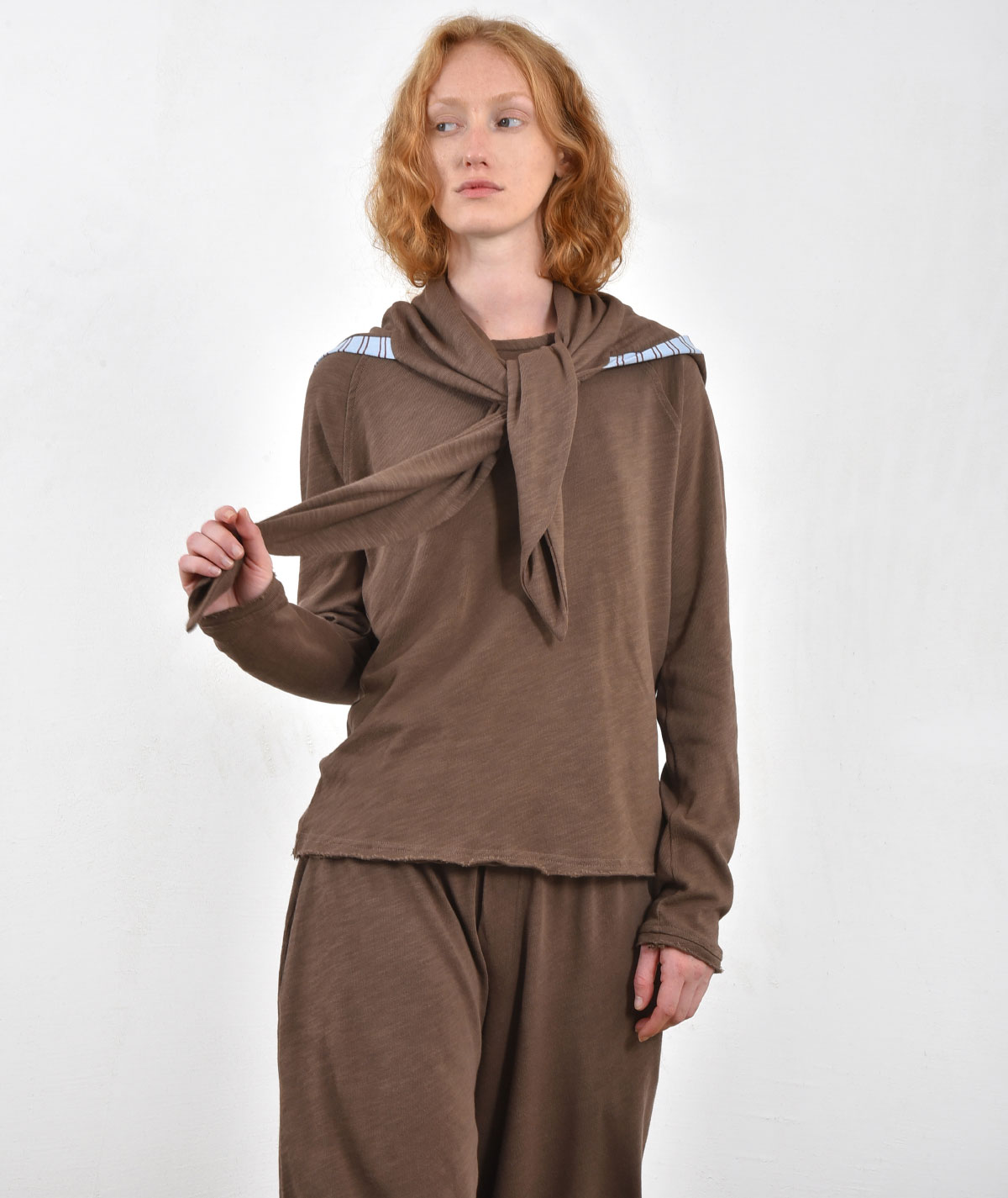A versatile accessory that combines functionality and style. The 100% cotton hood-scarf offers softness, a natural feel, and comfort in every season. It can be worn in multiple ways — as a hood for extra protection or as a scarf for a minimal, contemporary look.