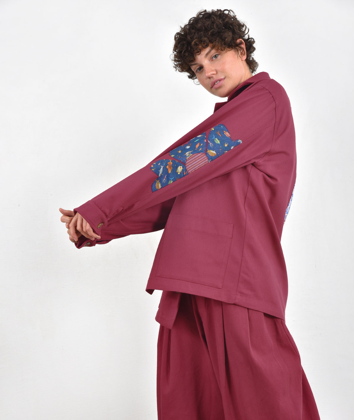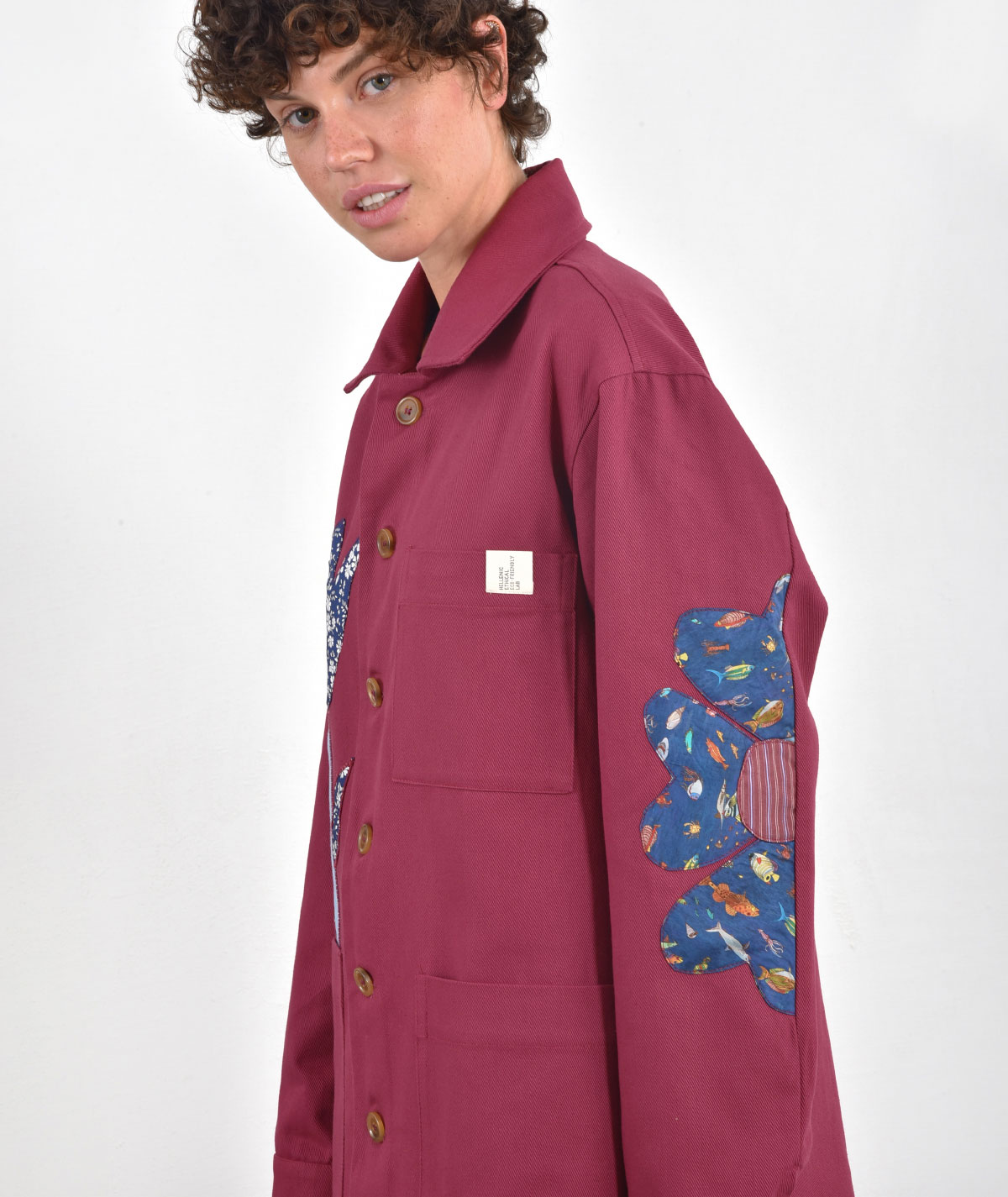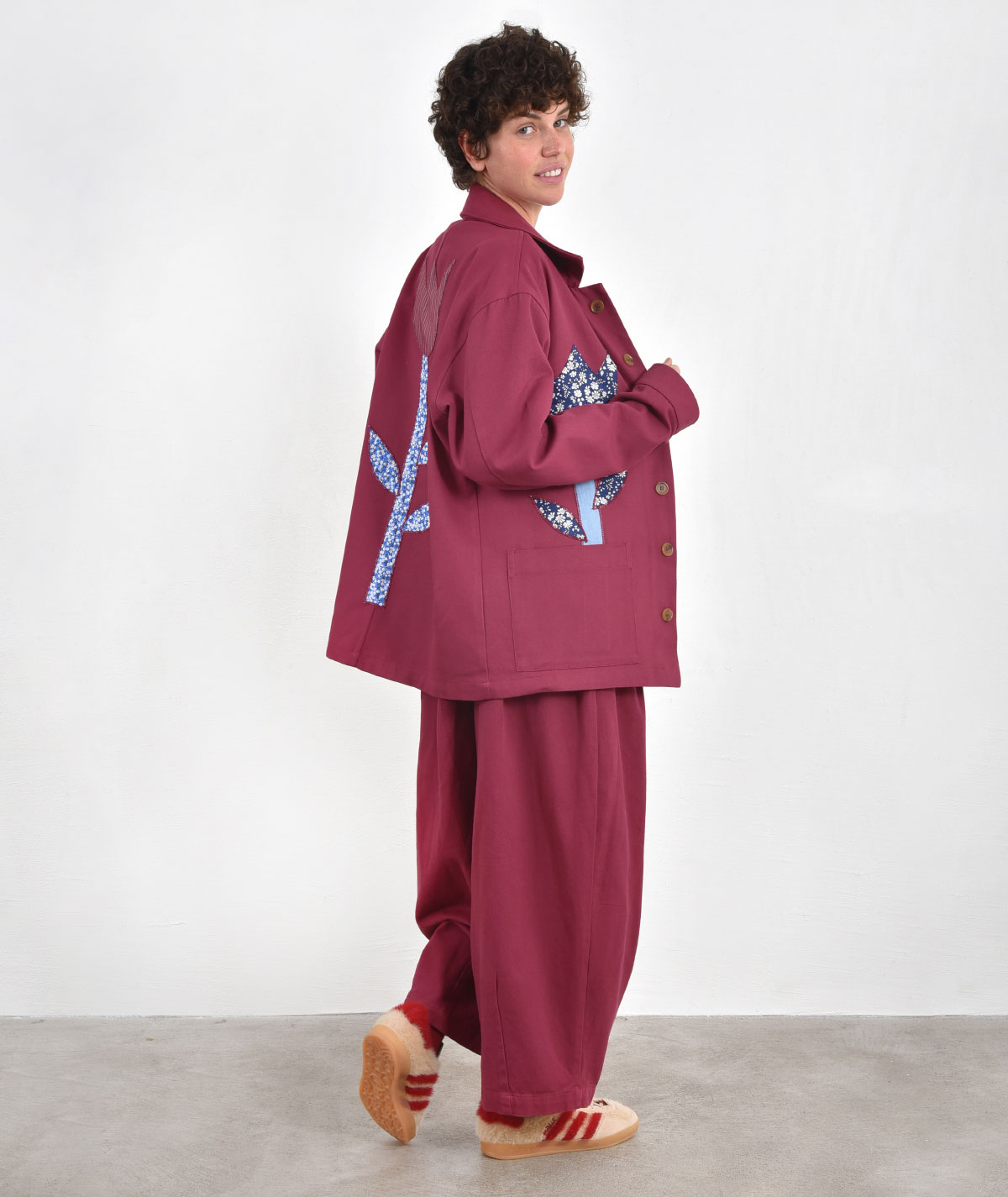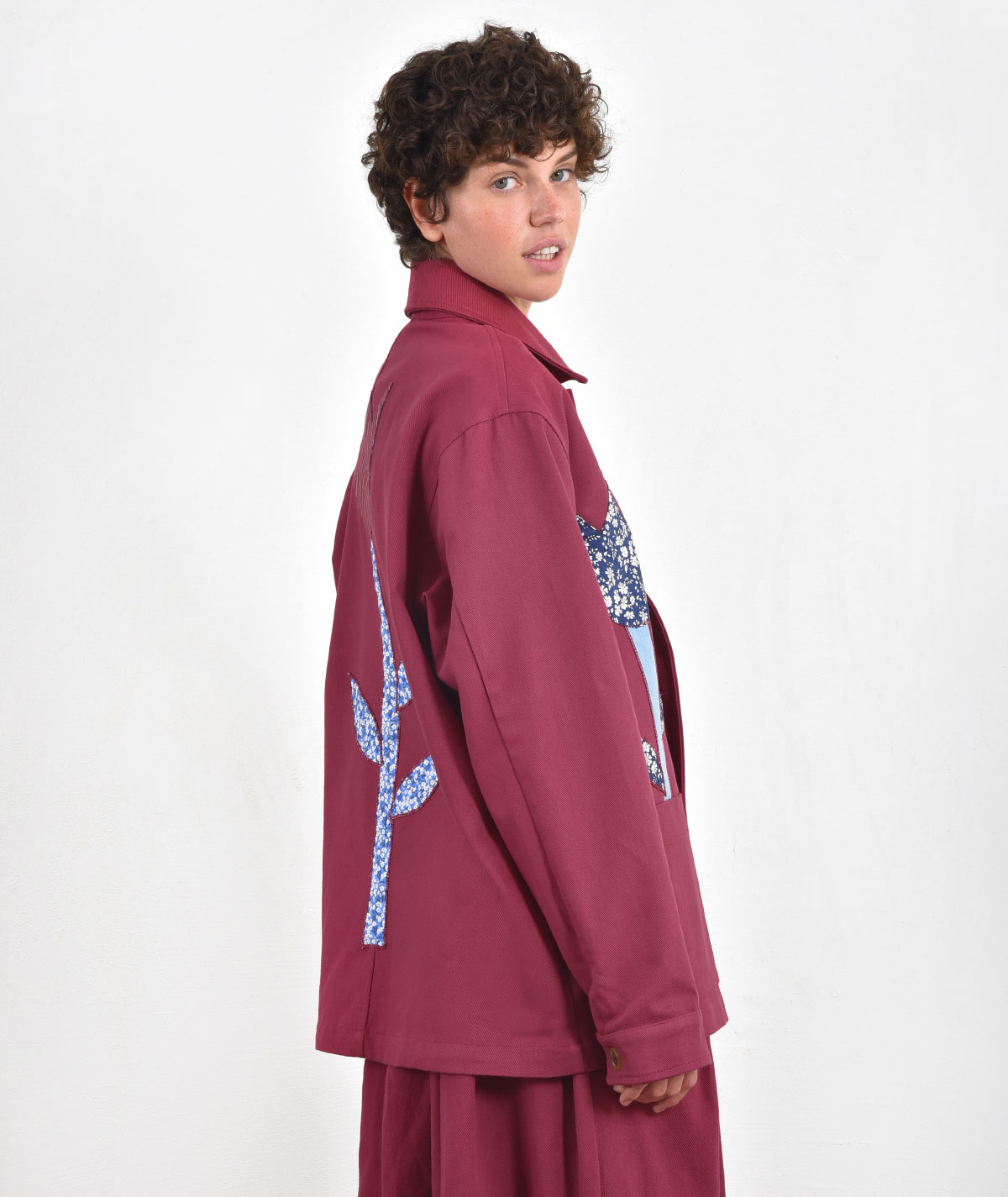 Unisex jacket crafted from premium cotton canvas, adorned with bold appliqué flowers, each hand-cut and hand-placed using leftover fabric remnants. Designed and handmade in our studio in limited quantities, it offers style, comfort, and a true statement aesthetic. A standout piece that elevates any outfit—from casual looks to more refined ensembles.