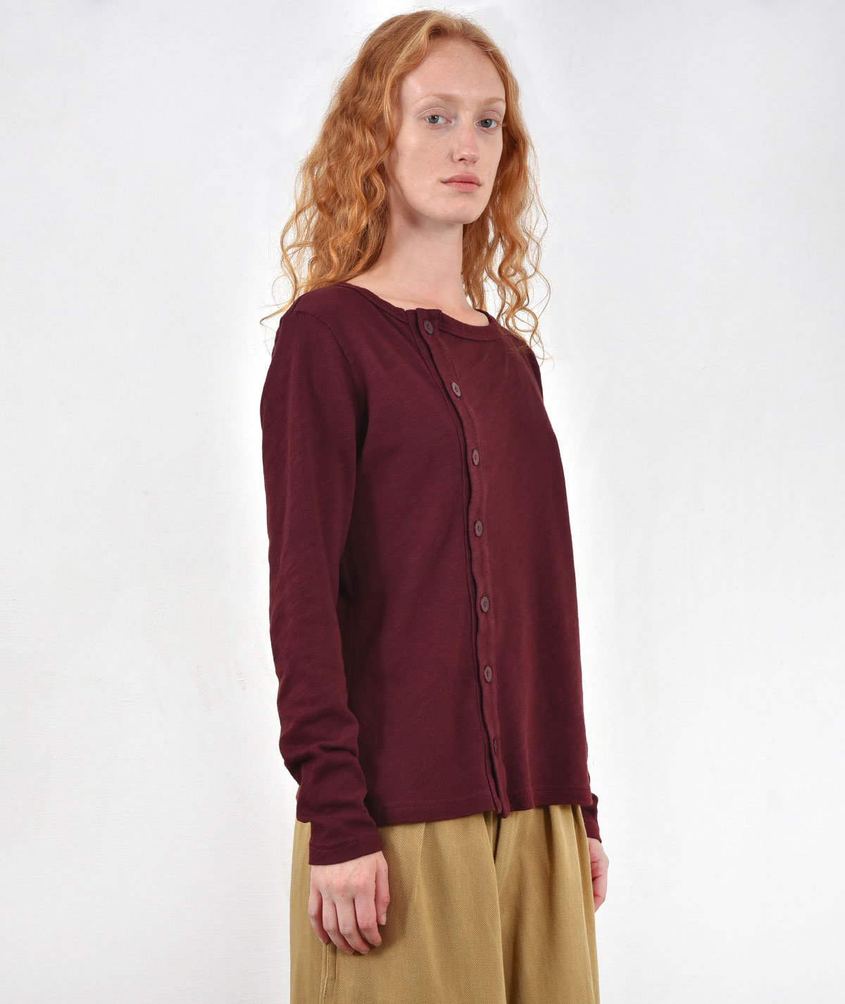 Cotton cardigan-blouse made from 100% pure cotton, perfect for any occasion. It stands out with its unique fastening on the side, adding a touch of modern style and feminine elegance. Wear it open over your favorite top or buttoned up as a blouse for a versatile and chic look, from day to night.