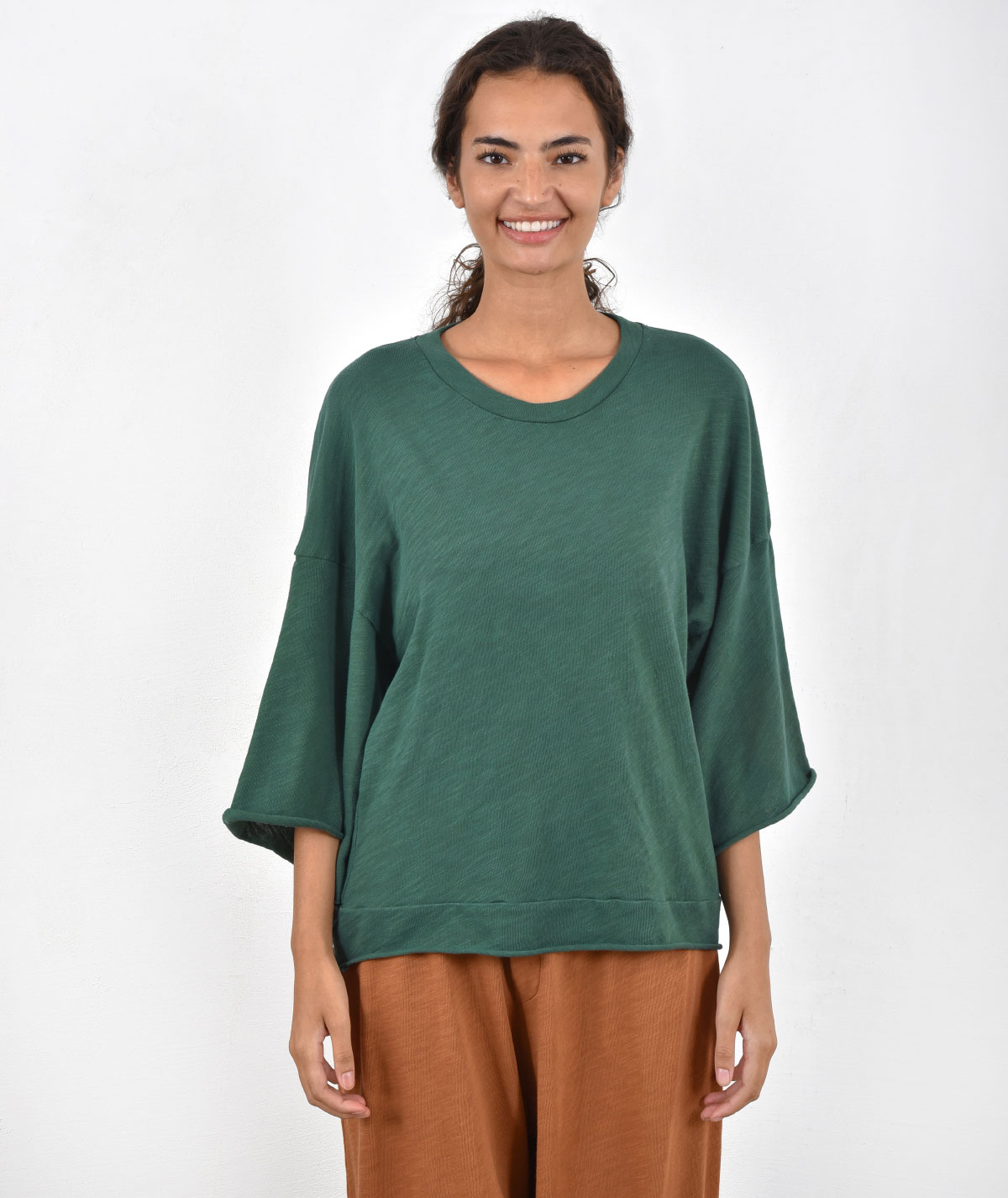 Your favorite piece returns in a beautiful soft cotton fabric for all-day comfort and style. Featuring 3/4 sleeves for a chic look and versatility, this top pairs perfectly with any pants from the collection. A key wardrobe piece for looks from morning to night, ideal for the office, a casual outing, or a more polished occasion.