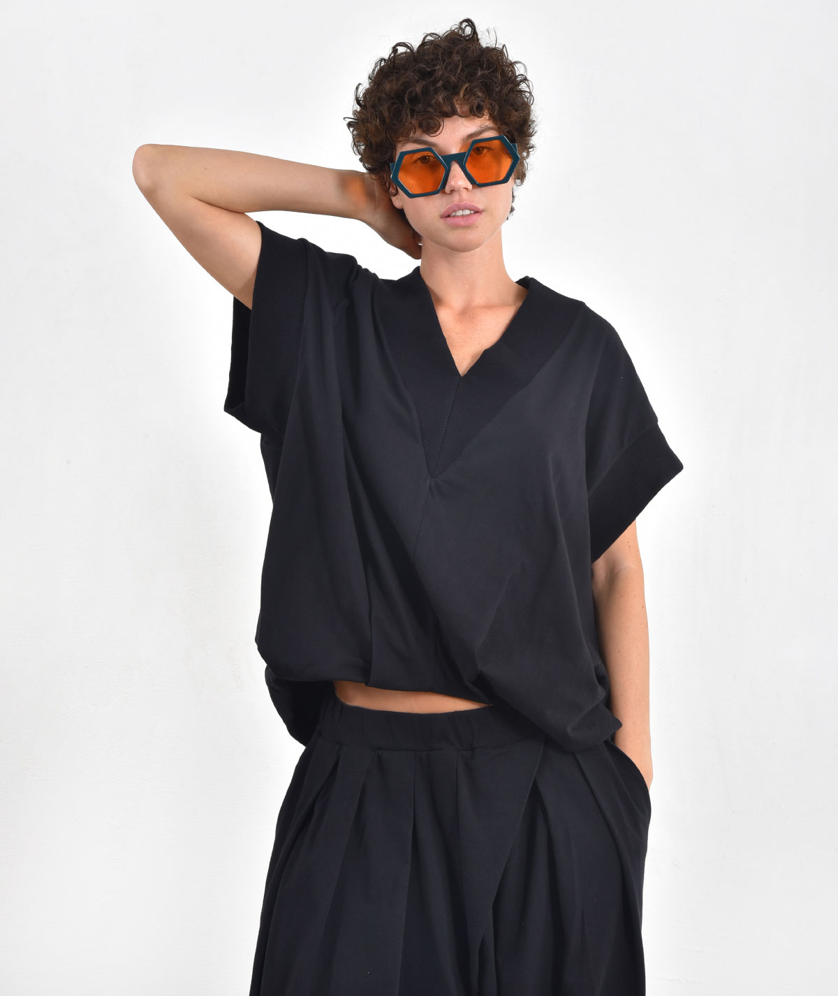 Blouse with a V-neckline in a balloon silhouette, crafted from 100% soft cotton. It offers comfort and an airy fit, perfect for everyday wear as well as more polished looks. Its minimal design makes it easy to style and suitable for any season.