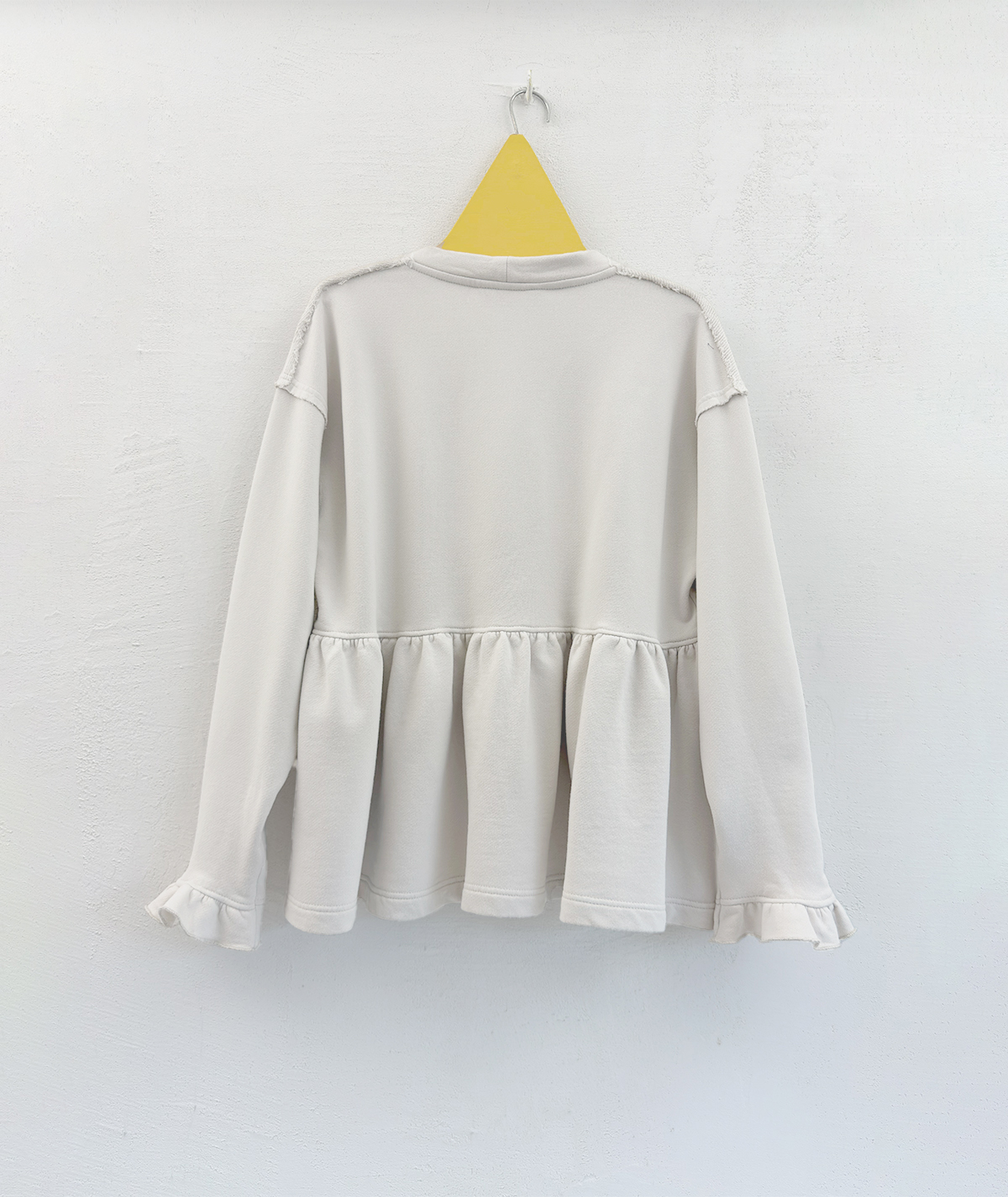 Light elegance with a playful touch. This oversized ruffled blouse is the piece you'll love wearing every day. Crafted from 100% premium cotton, it offers a naturally soft feel and subtle luxury. Pairs beautifully with tailored trousers, skirts, or jeans for a look that radiates femininity and freshness.