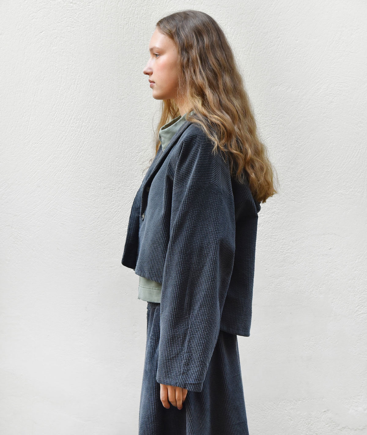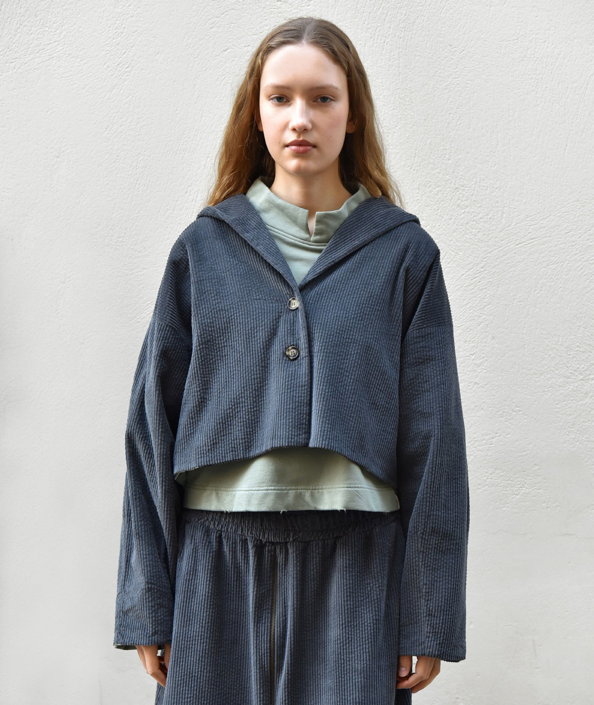 Discover the corduroy jacket with hood, made from 100% cotton for a natural feel and all-day comfort. Its cropped length and relaxed fit offer a modern, effortless style, while the unique back detail adds a distinctive touch that sets it apart. Pair it with the matching corduroy trousers from the collection for a complete, chic look.