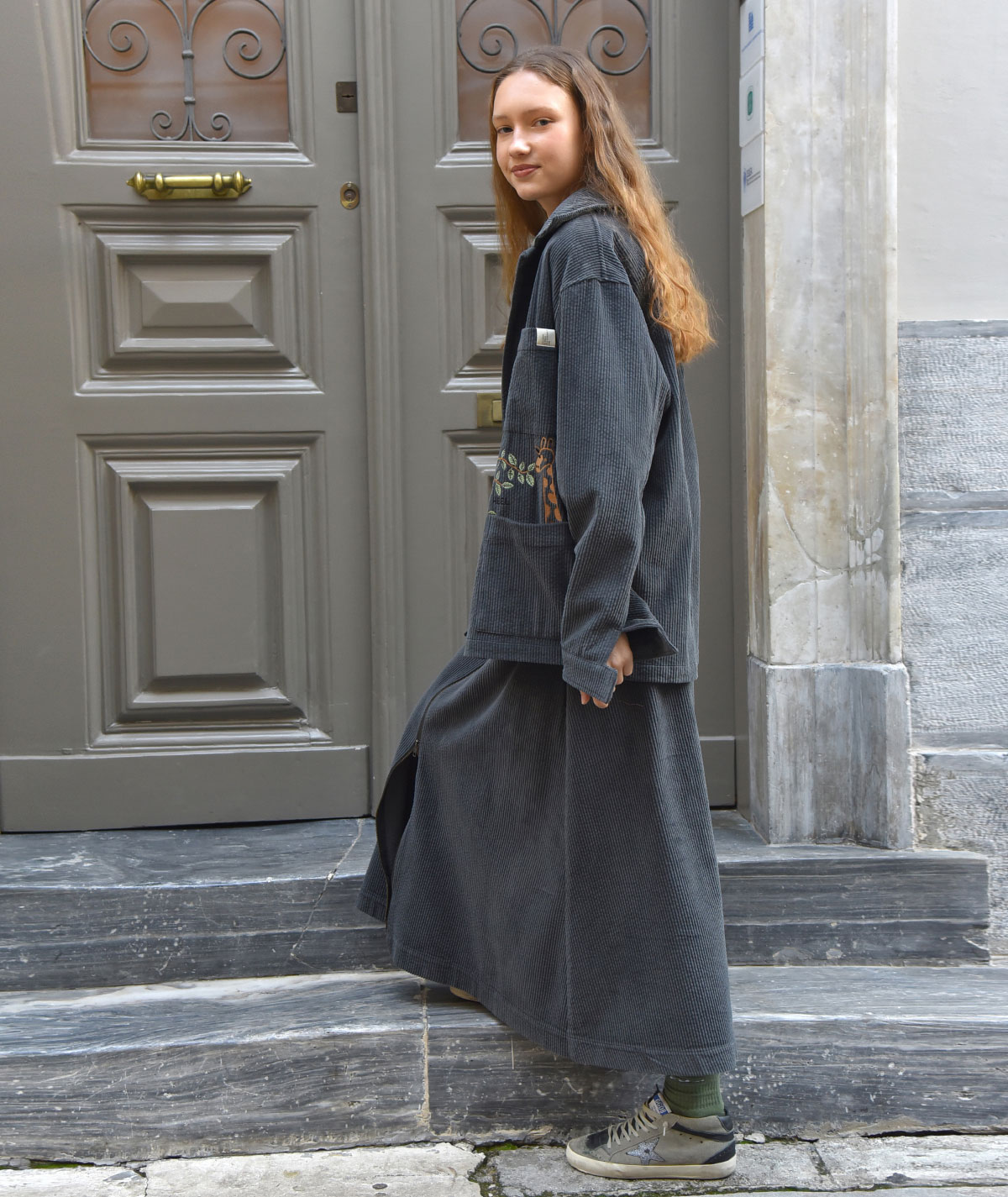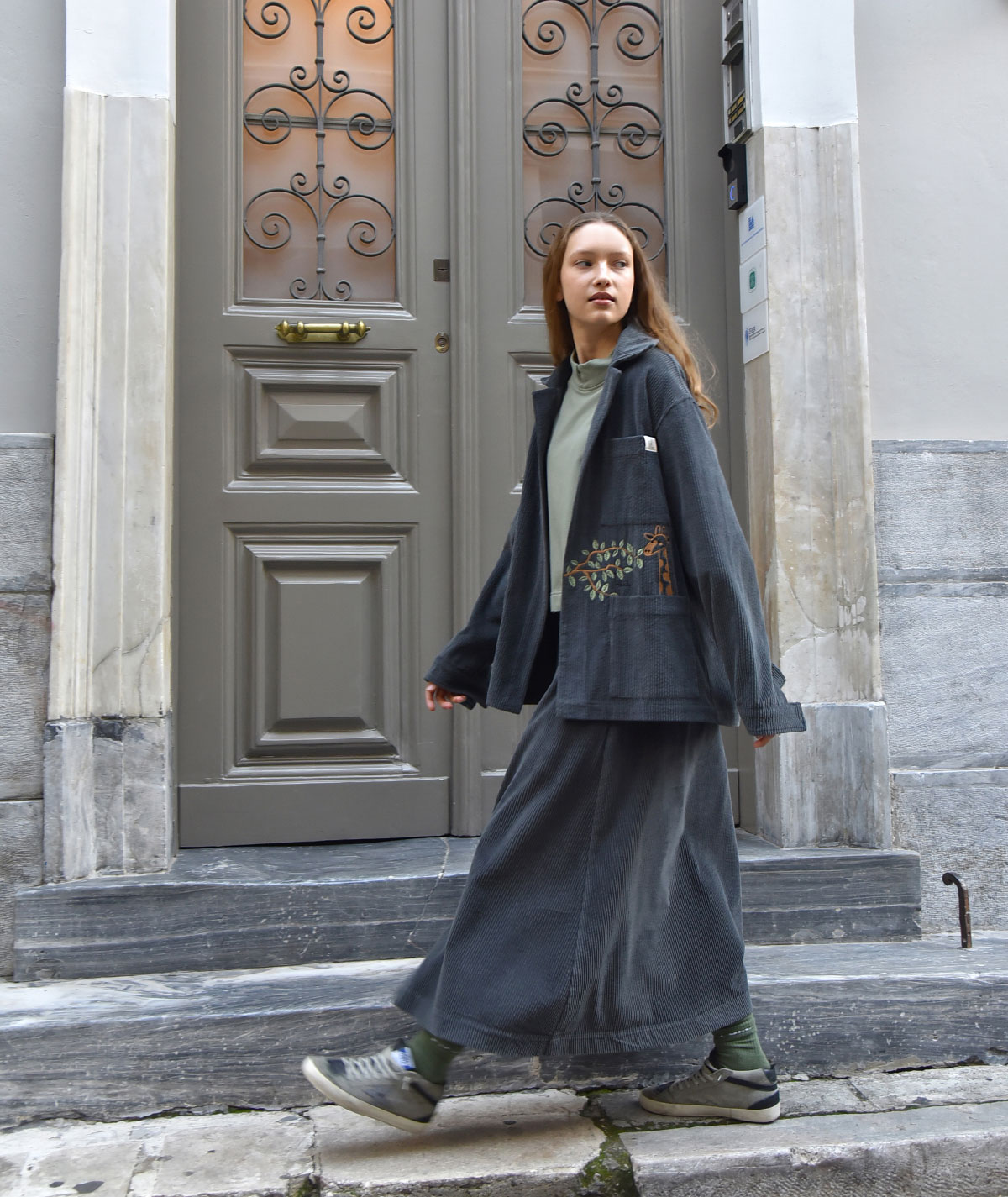 Our corduroy jacket is an everyday essential with a unisex feel. Made from soft corduroy fabric with a subtle embroidered detail, it blends comfort, simplicity, and modern style. An easy-to-wear, versatile piece that naturally fits into any everyday look.