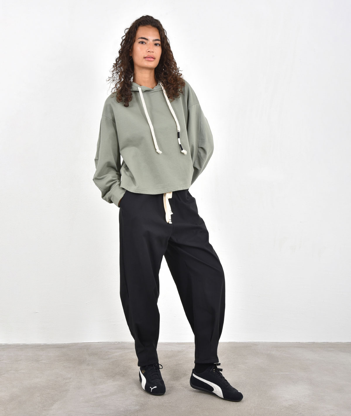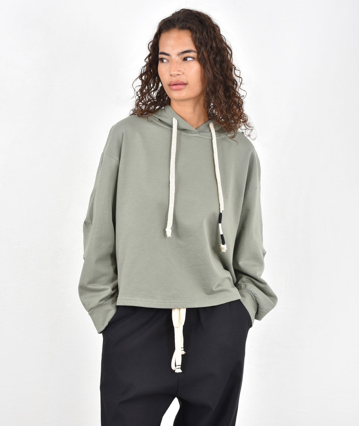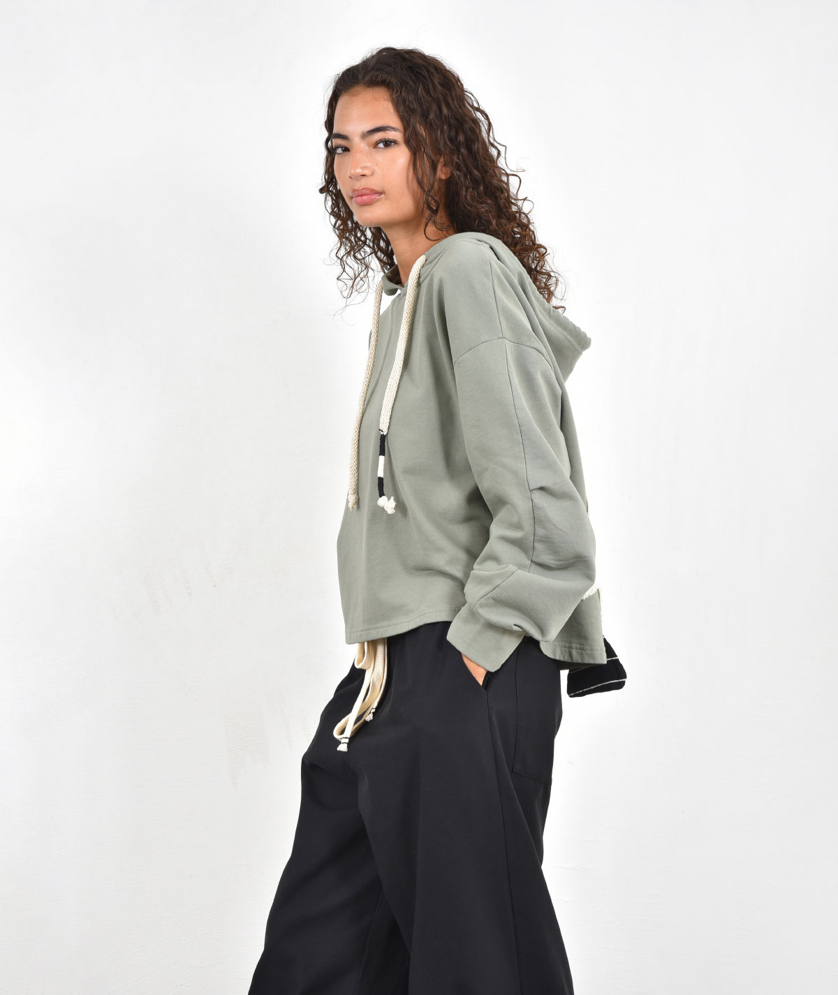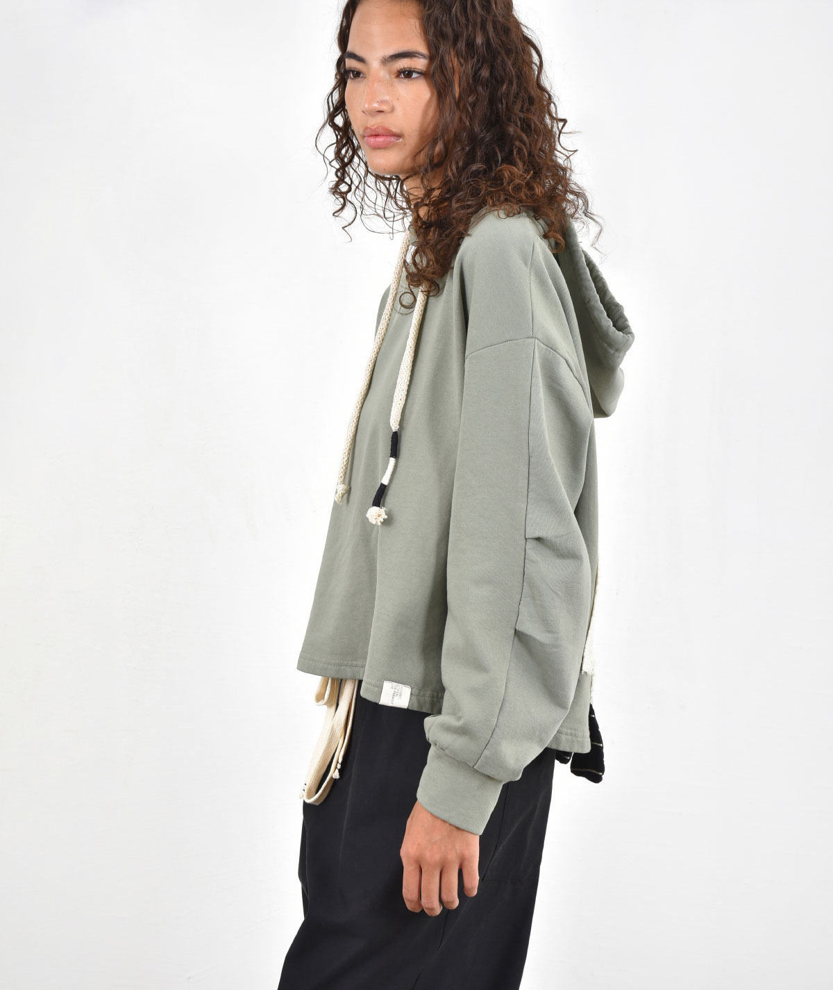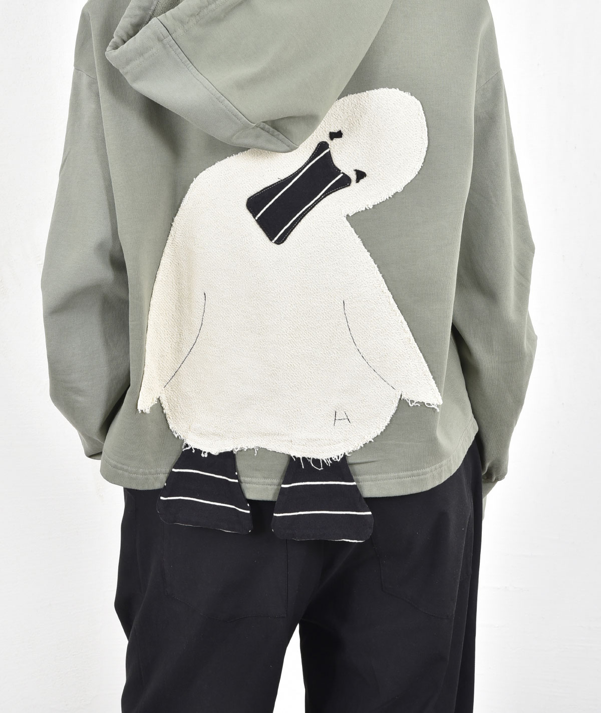 Cotton blouse with a hood and a handmade applique design on the back. A sweatshirt that brings joy! With a playful duck. Put it on, turn your back and spread smiles!