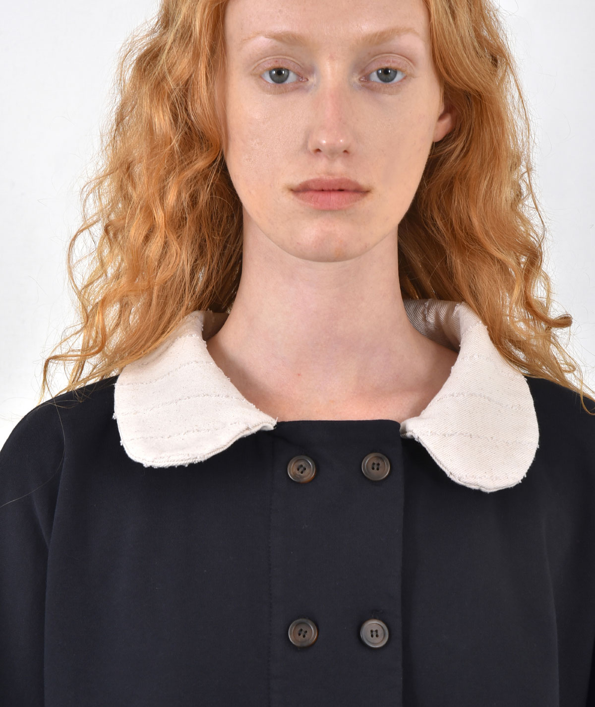 Women’s jacket with a collar, made of structured 100% cotton fabric.