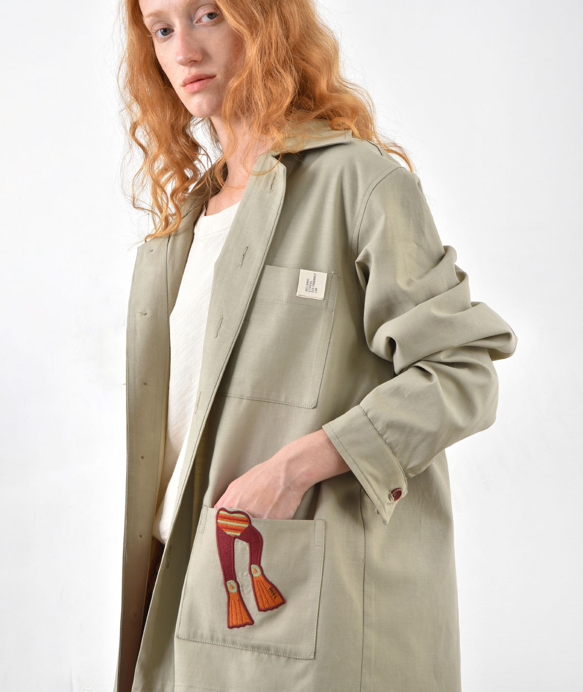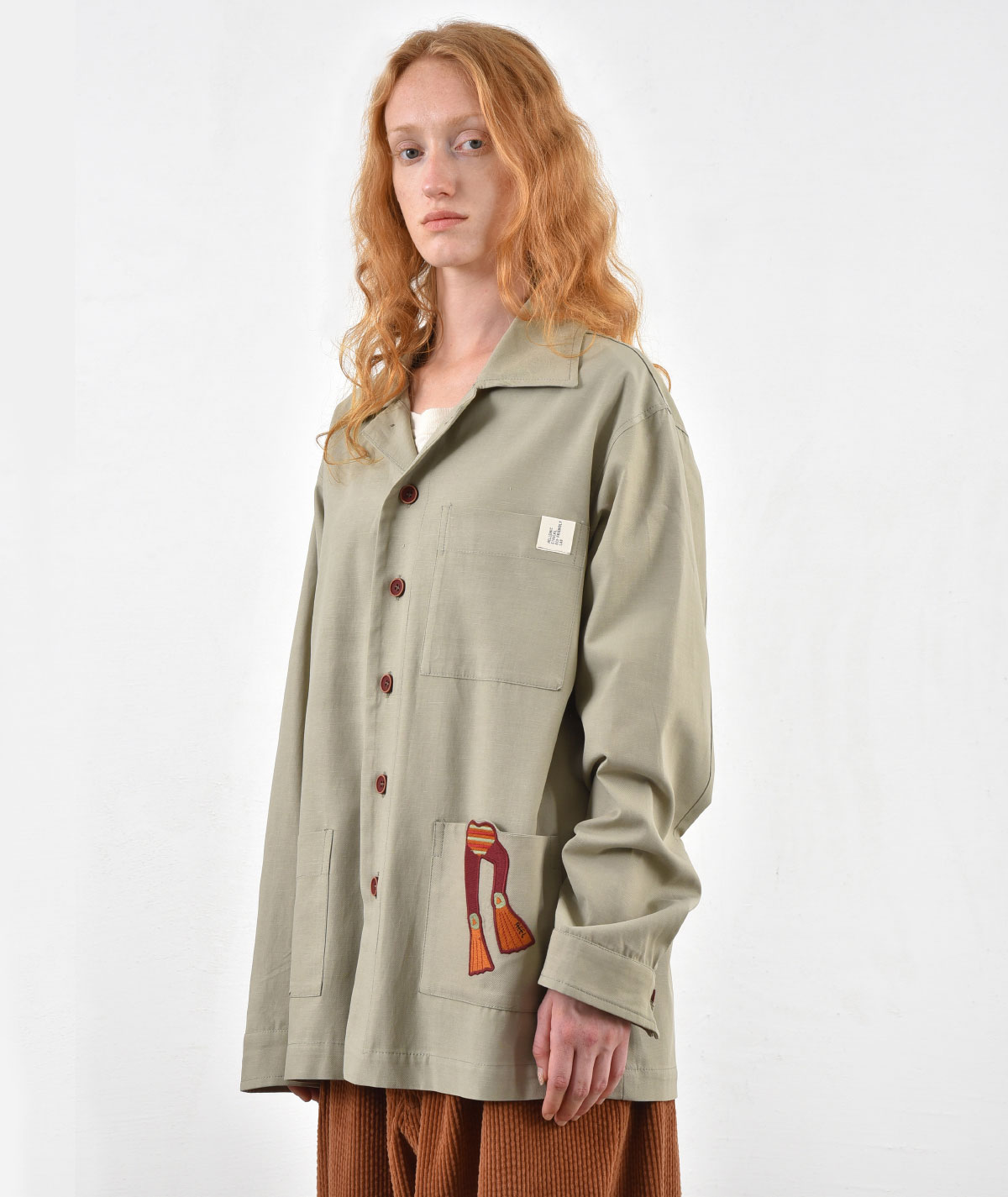 The little swimmer diving into the pocket adds a playful touch — a moment of imagination stitched into everyday life.