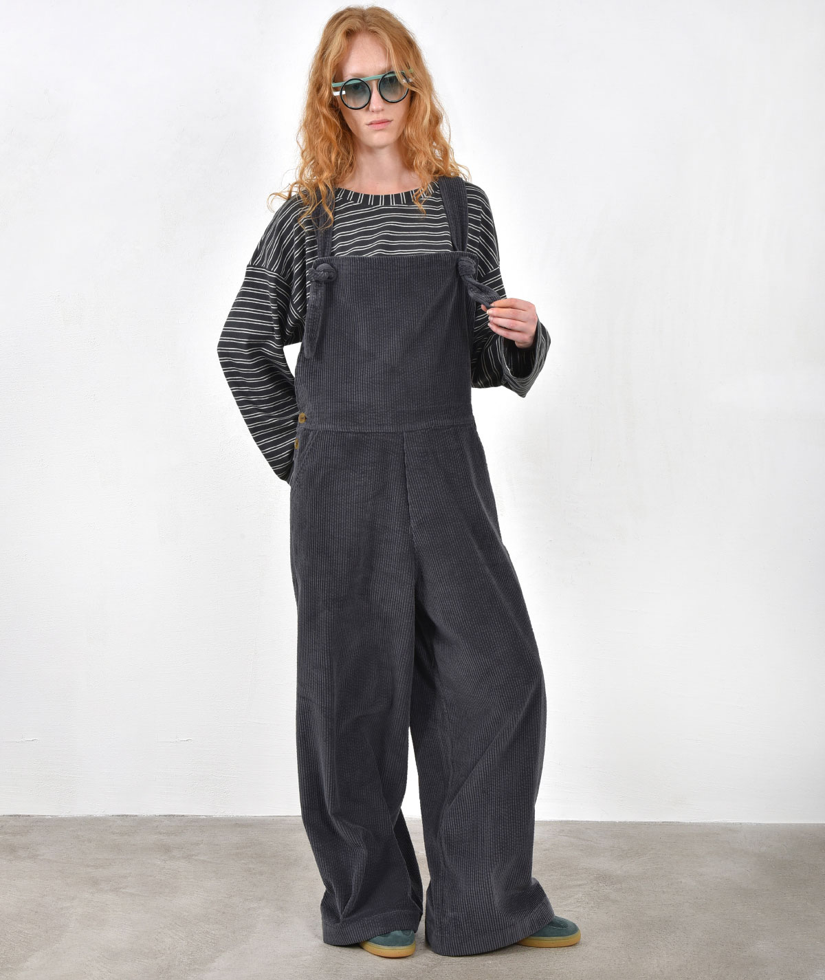 Refresh your everyday style with this corduroy jumpsuit, crafted from 100% cotton for ultimate comfort and a natural feel. The soft corduroy texture is paired with a modern silhouette and practical ties that ensure a perfect fit. Ideal for both casual outfits and more polished looks.