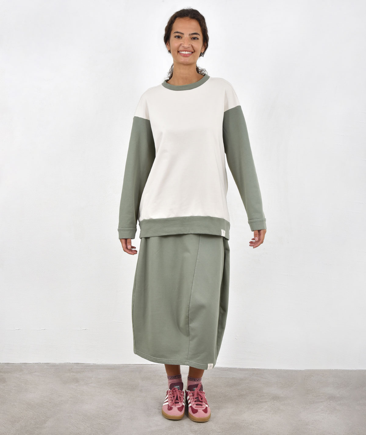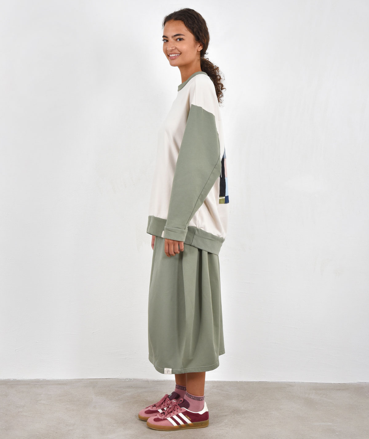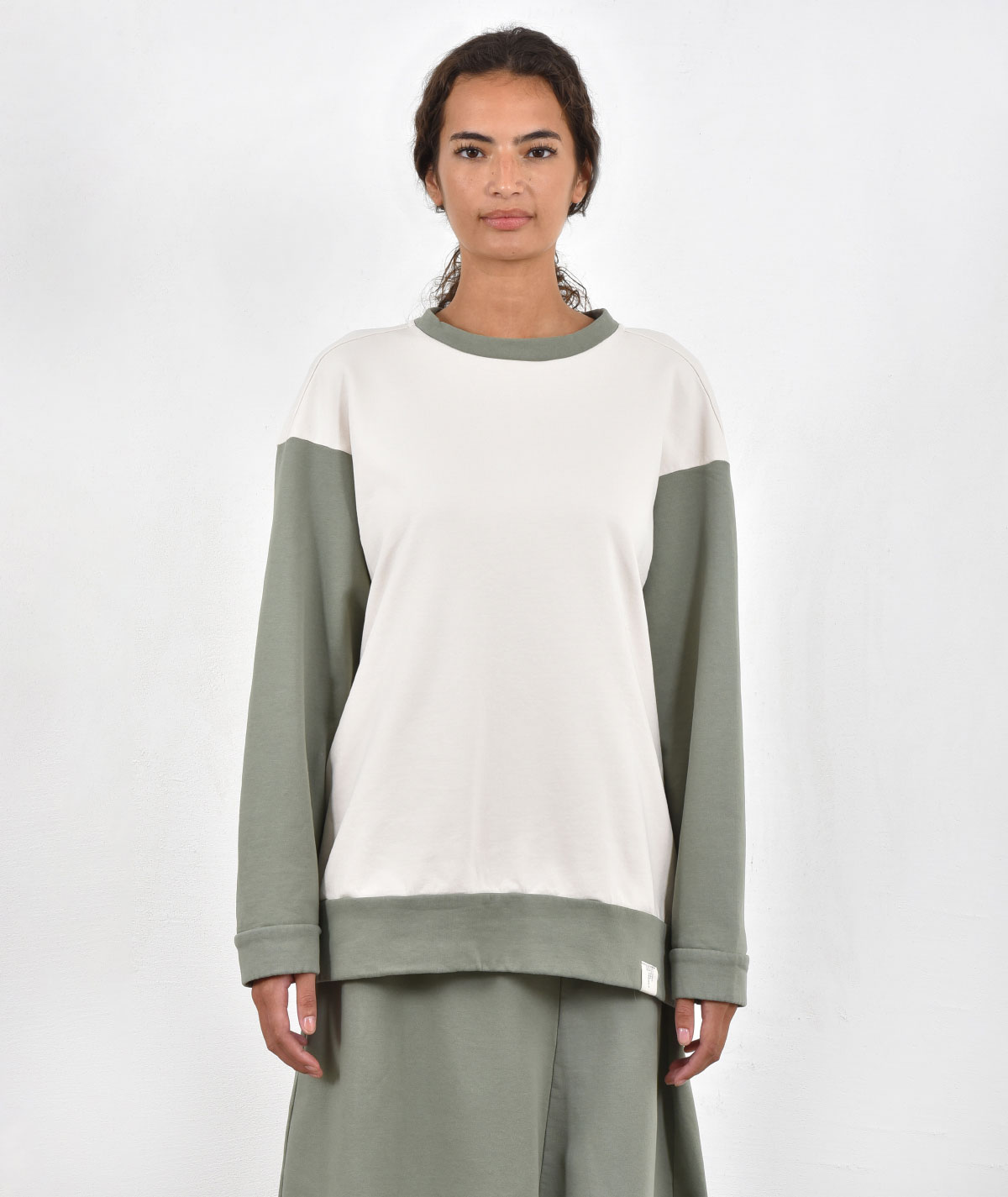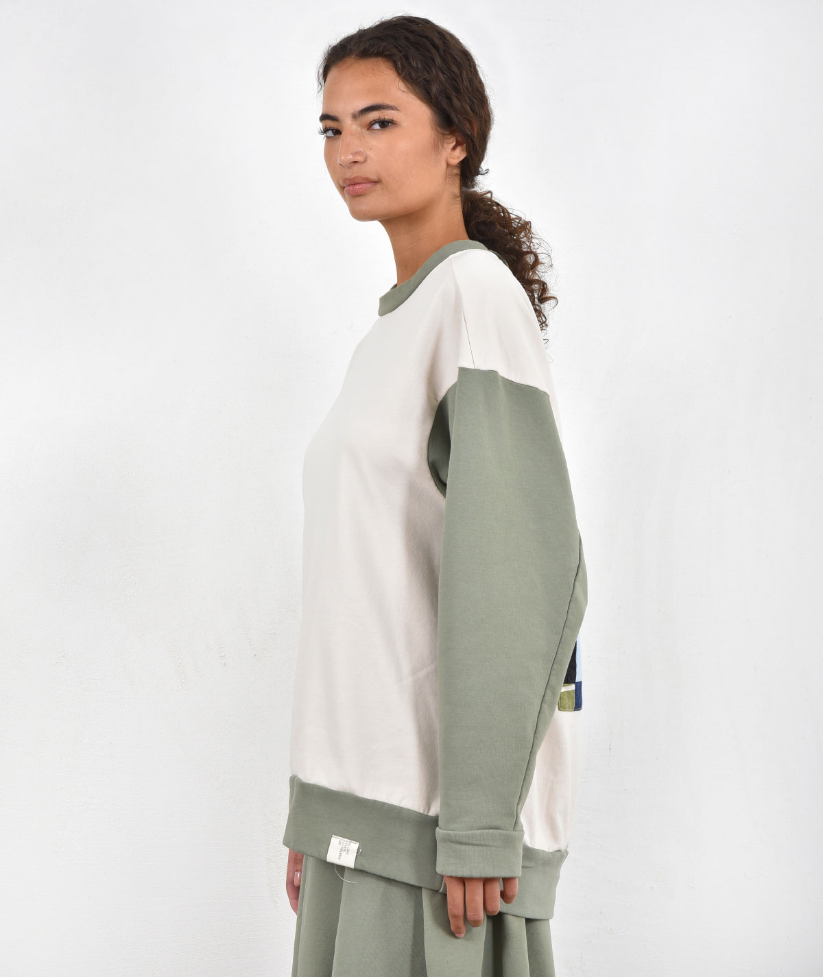 Elevate your everyday style with this oversized 100% cotton sweatshirt, perfect for comfort and freedom of movement. The sweatshirt stands out with its handmade appliqué design on the back, adding a unique touch and character to any outfit. Pair it with its matching pants or explore styling options with the other pants from the collection for a complete, modern look.