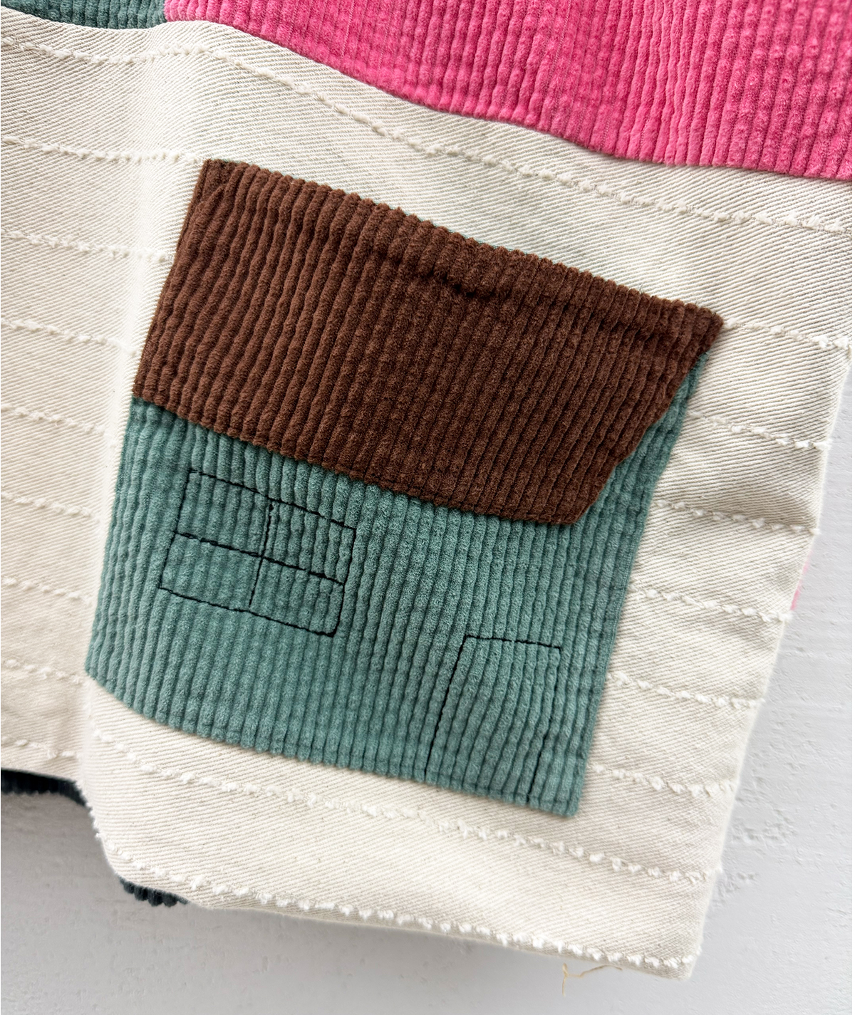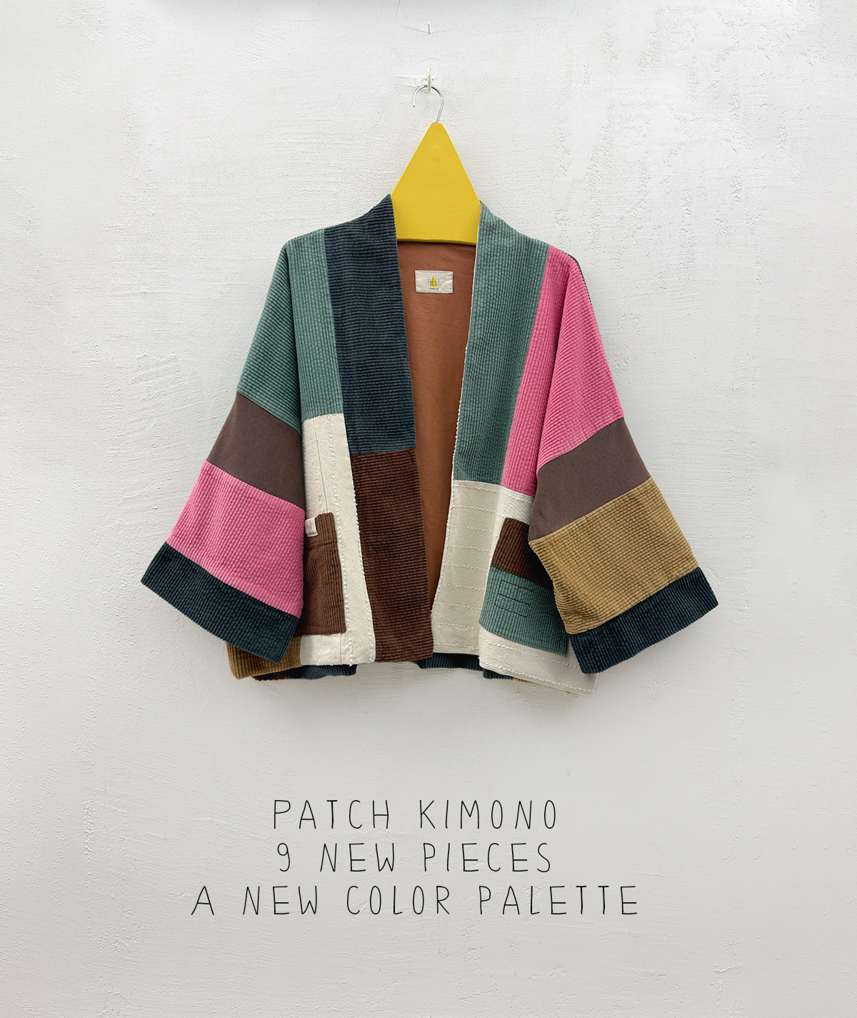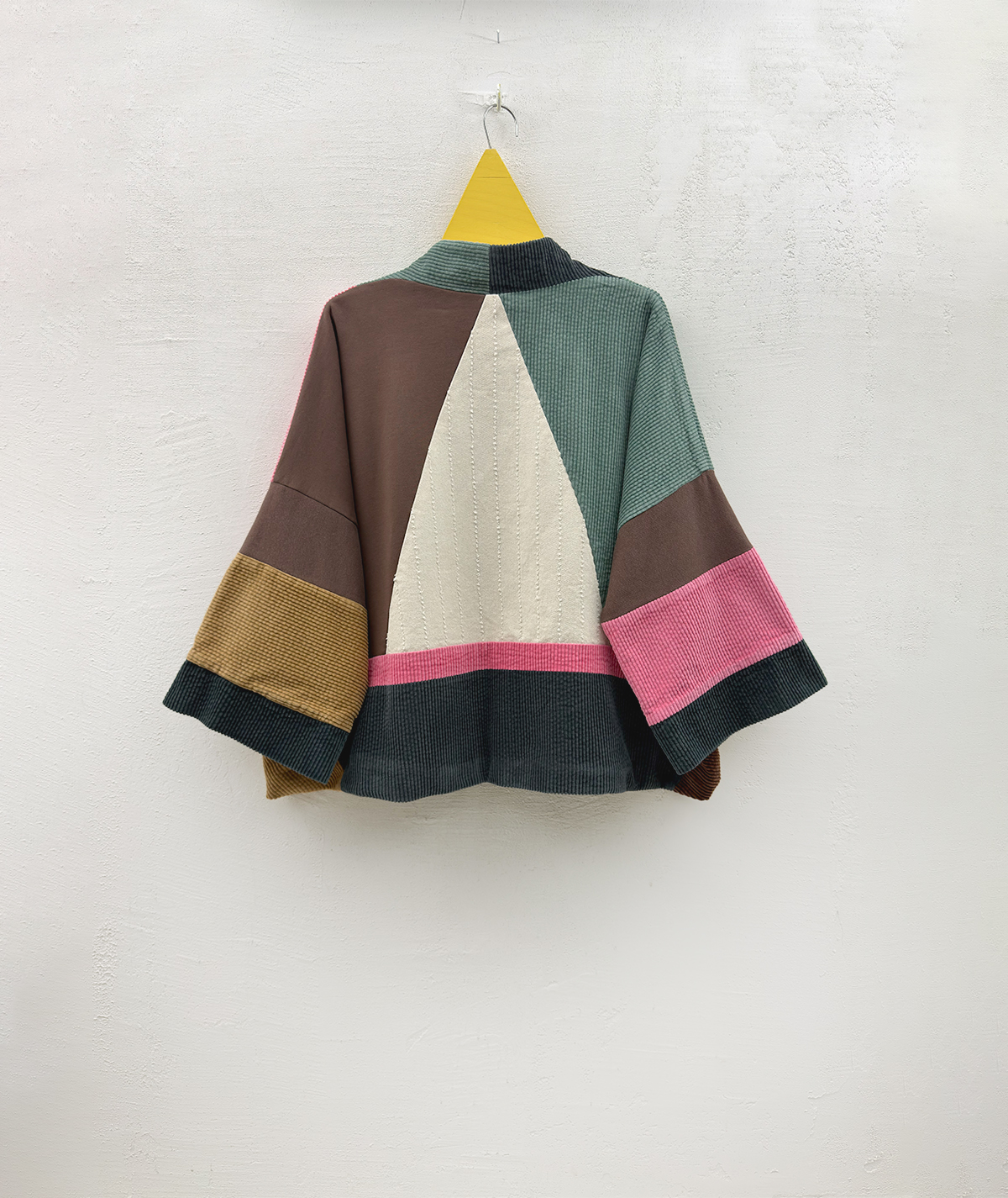 A kimono jacket made from leftover fabrics from previous productions. Each piece is assembled intuitively yet thoughtfully — nothing identical, nothing random. Its relaxed fit makes it easy to wear throughout the day, layered over everyday garments. One size, produced in only 8 pieces. Our patchwork pieces are handmade and one of a kind. Due to their unique character and construction, slight variations from the photo may occur.
