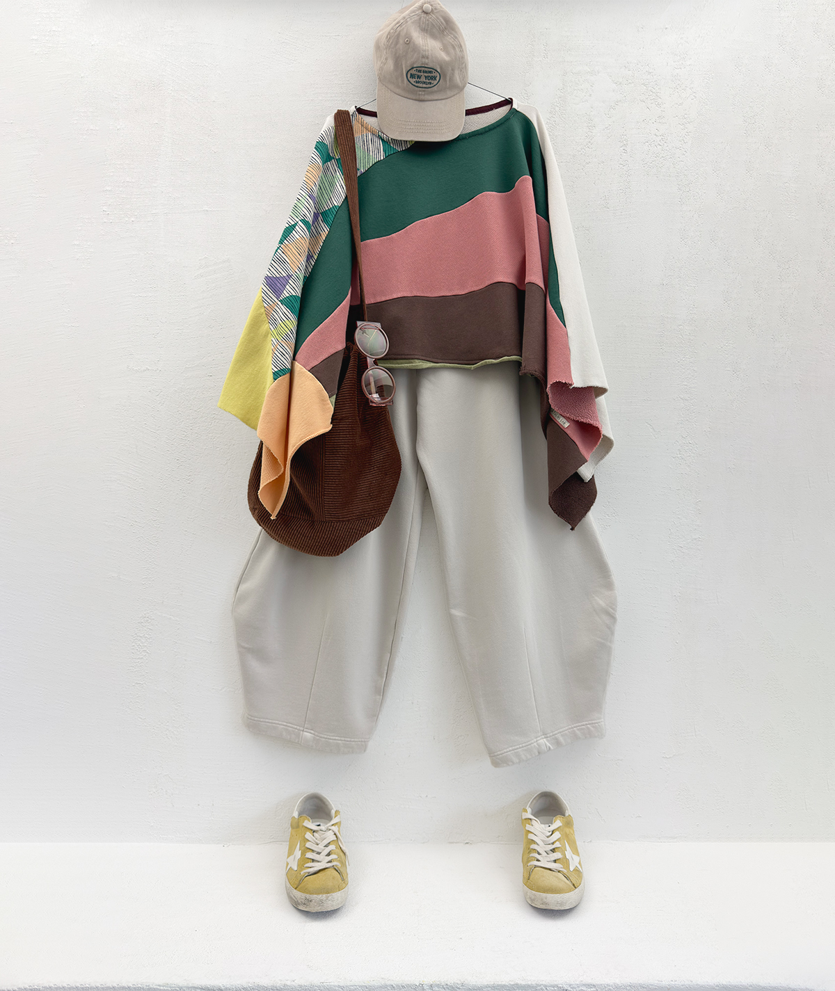 Women's polymorphic poncho "sun" in a combination of fabrics made of 100% cotton.