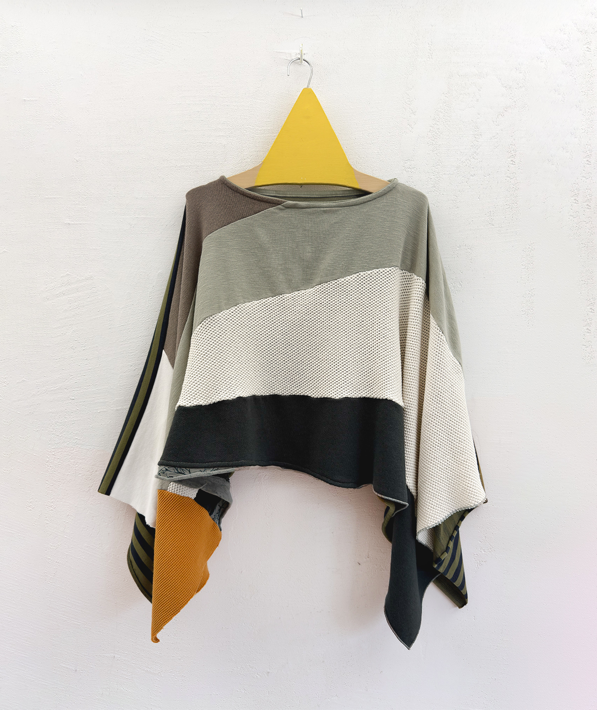 Women's polymorphic poncho "sun" in a combination of fabrics made of 100% cotton.