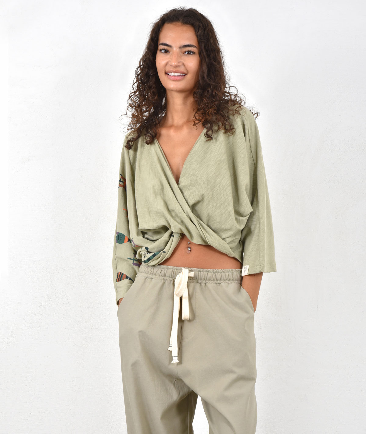 Handmade multifunctional blouse that makes every appearance unique. It can be worn on both sides for two different looks in one piece. Unique prints with joyful cyclists, inspired by respect for nature and harmonious coexistence with the environment. It reflects our vision of a world where love for the planet is self-evident. Wear it and share this message with us!