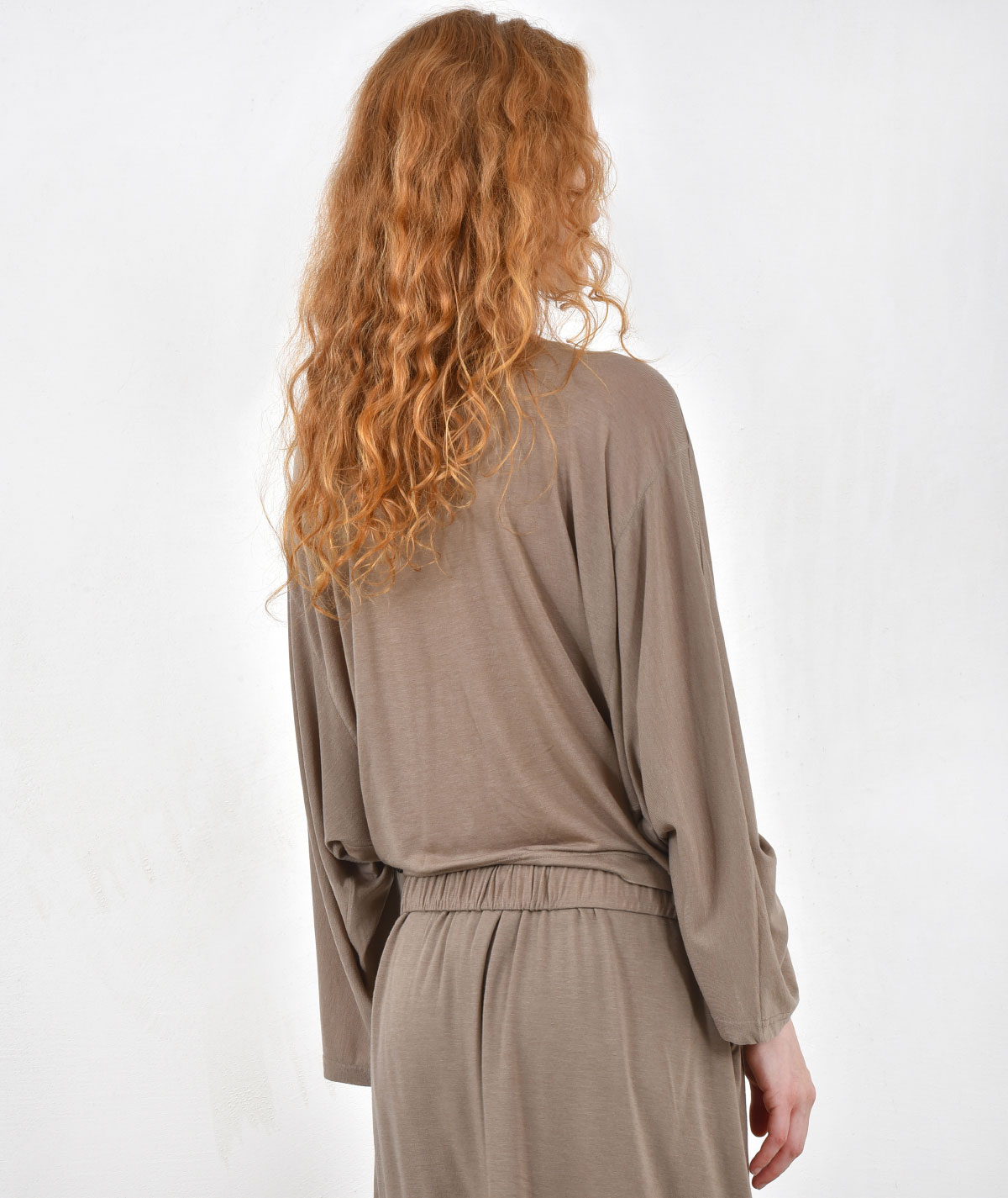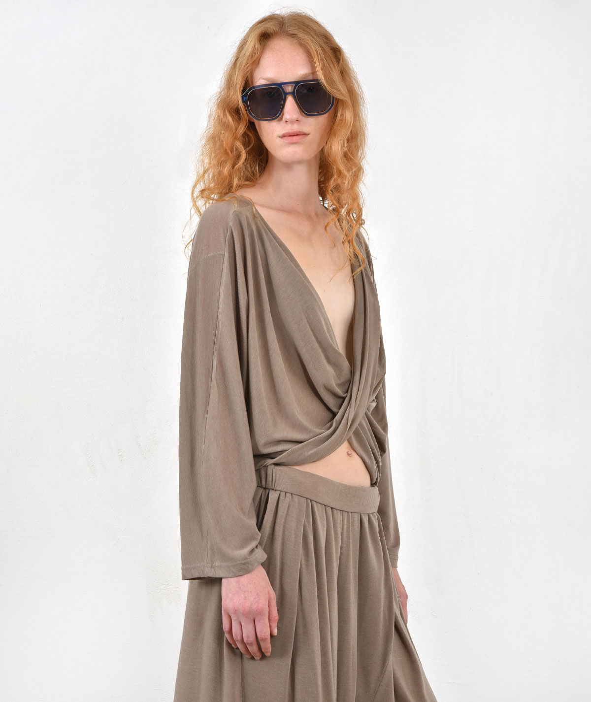 Polymorphic twisted blouse made from 73% Tencel, 19% μαλλί και 5% el.